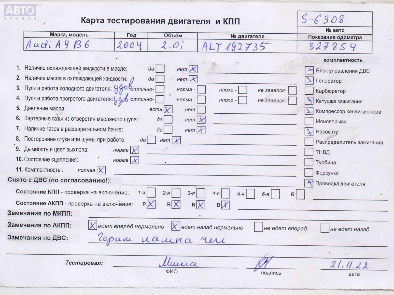 | Марка / Модель / Год: | Audi A4 B6 (2001-2004) 2004 |