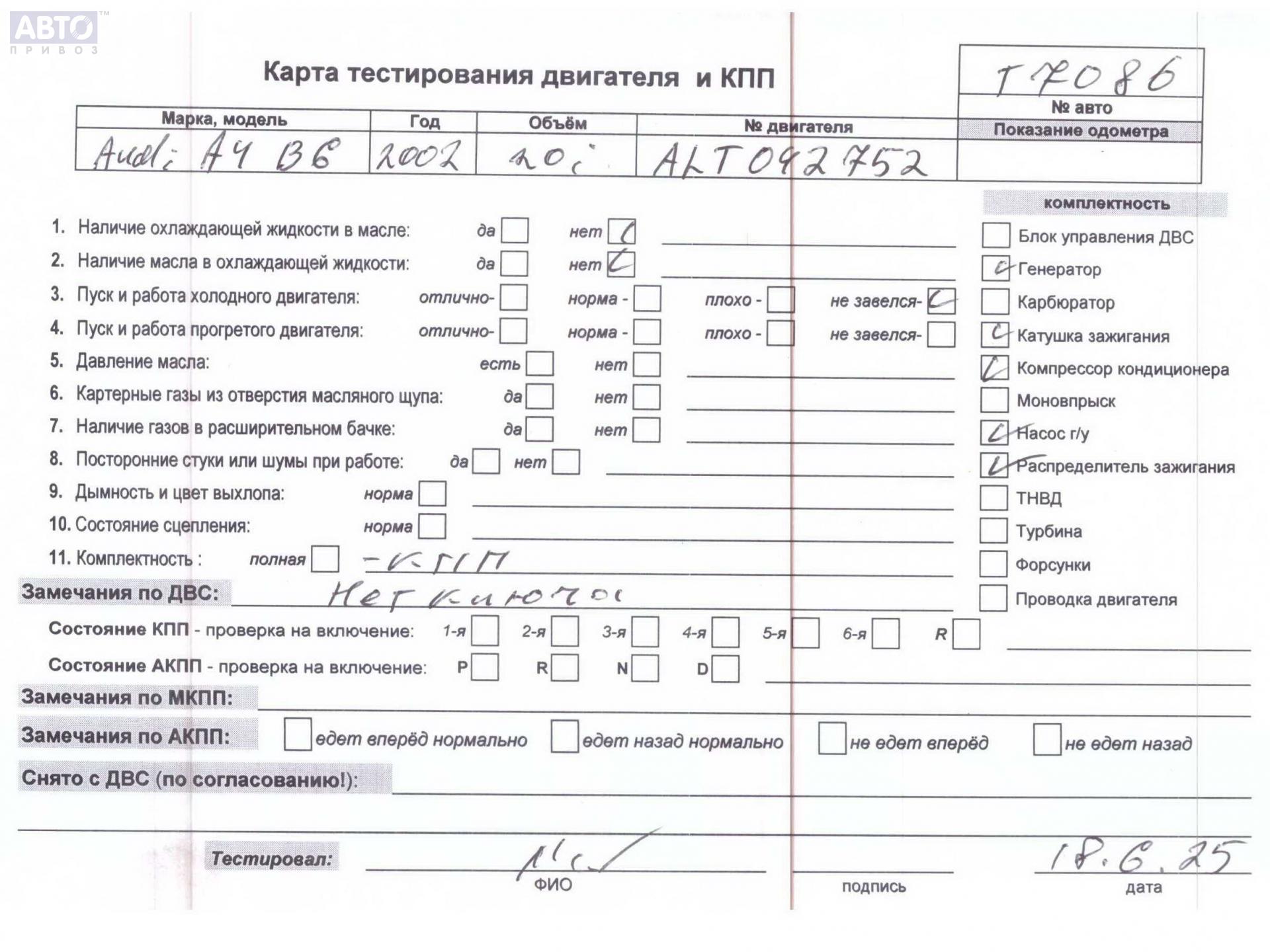 | Автомобиль / VIN: | T7086 WAUZZZ8E72A044976 |