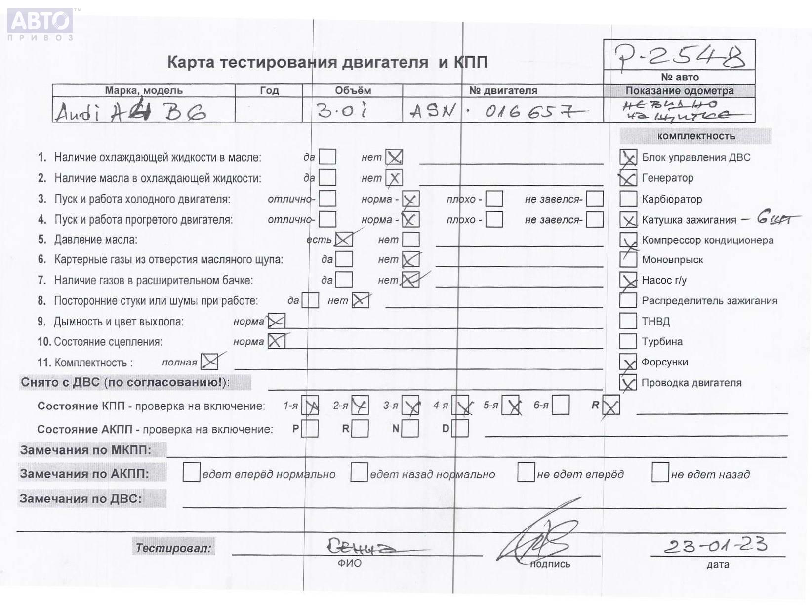 | Автомобиль / VIN: | P2548 WAUZZZ8EZ1A001645 |