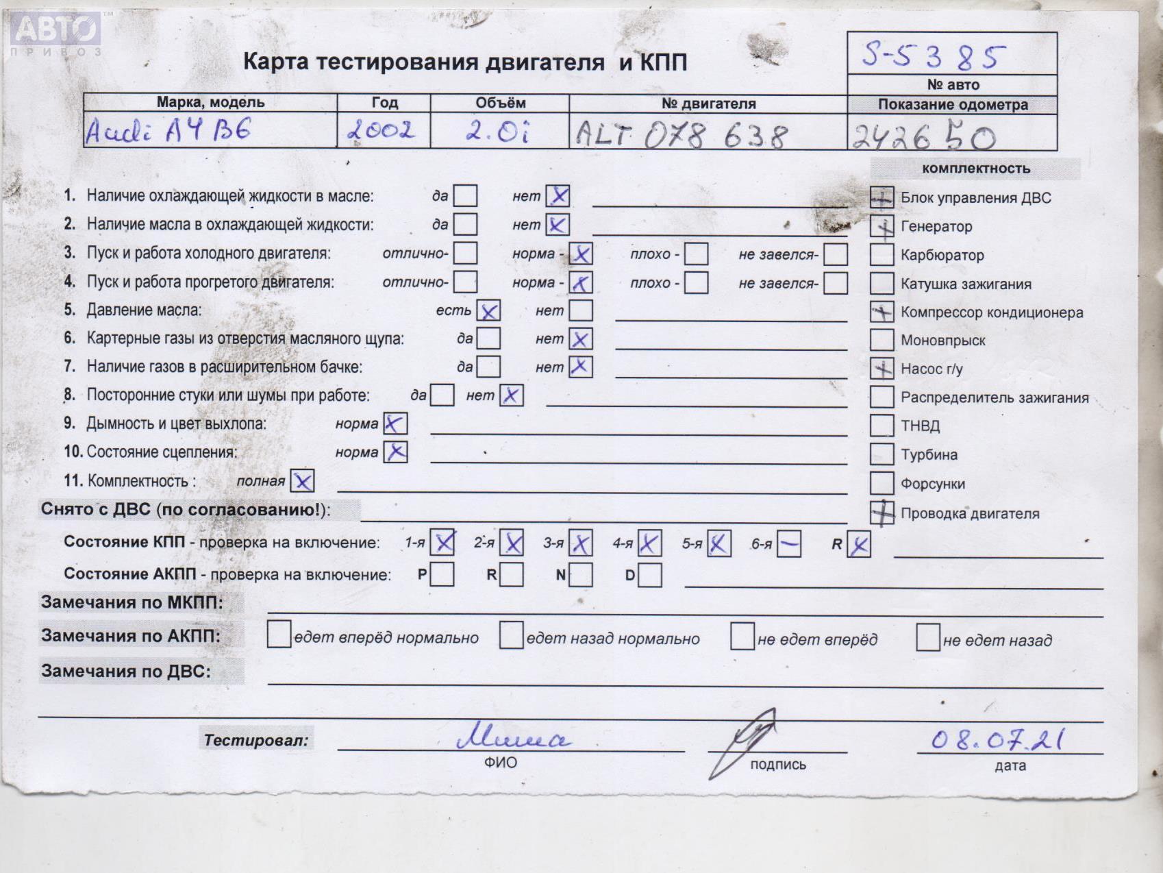 | Автомобиль / VIN: | S5385 WAUZZZ8E02A242718 |