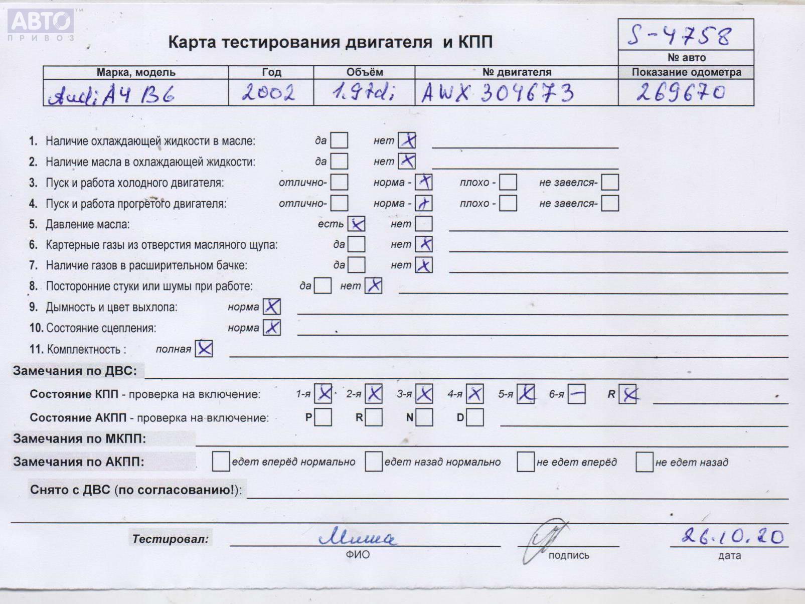 | Марка / Модель / Год: | Audi A4 B6 (2001-2004) 2002 |