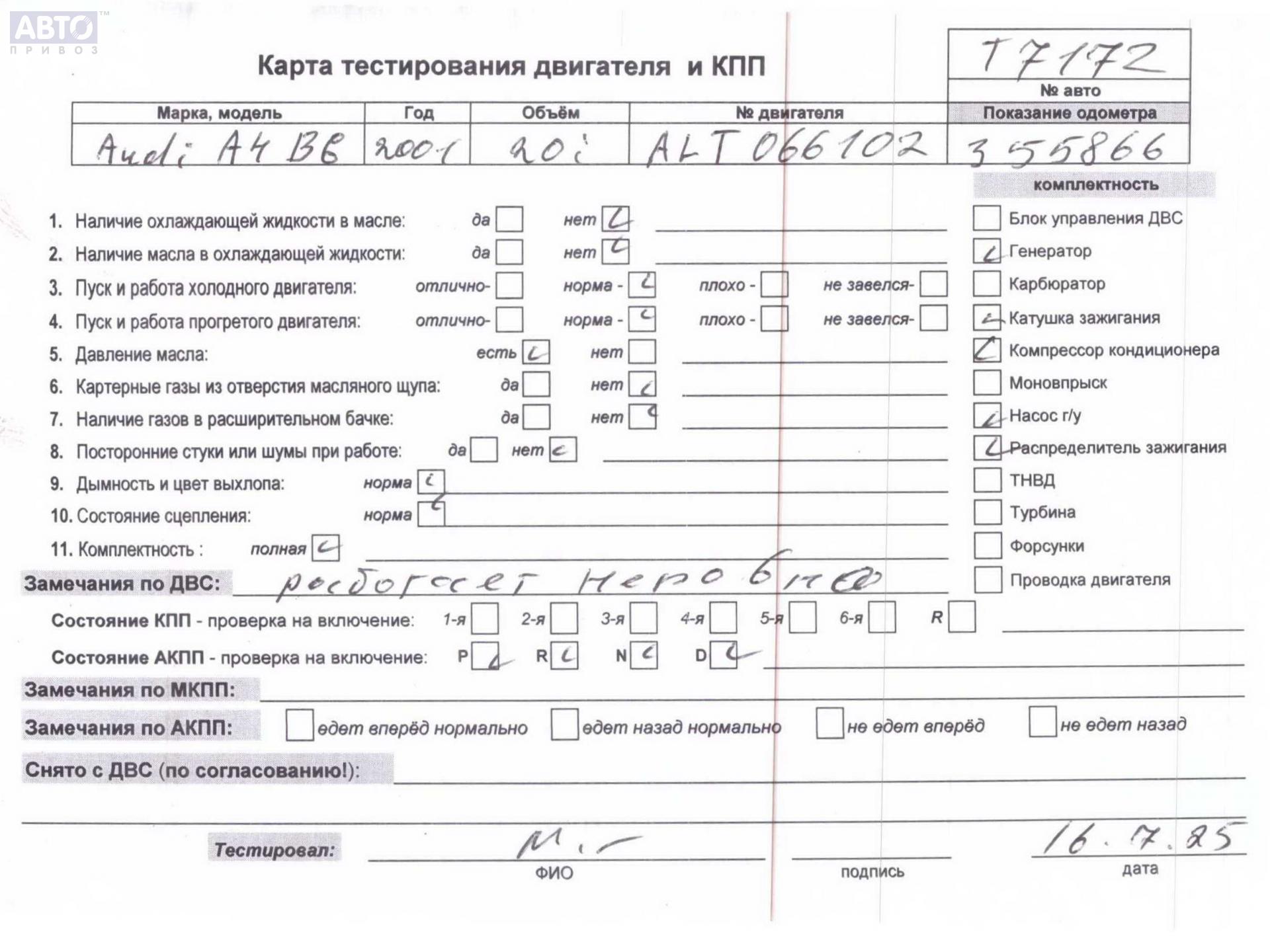 | Марка / Модель / Год: | Audi A4 B6 (2001-2004) 2001 |