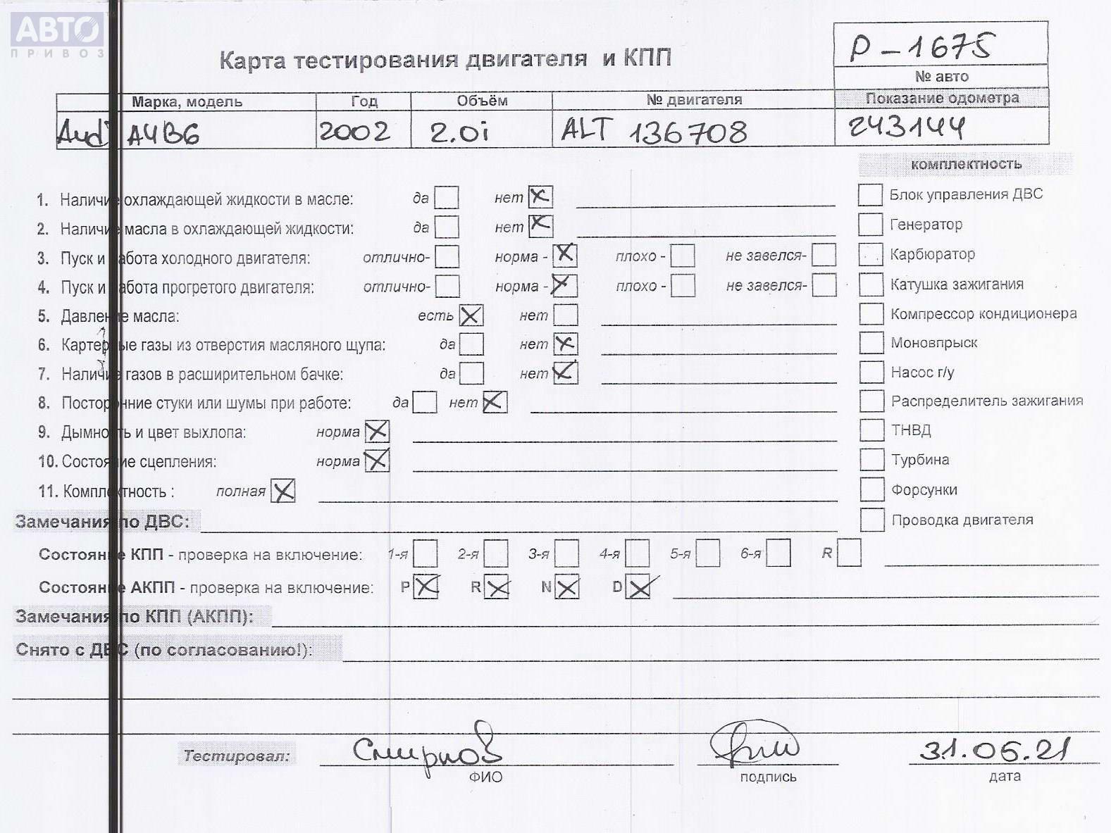 | Марка / Модель / Год: | Audi A4 B6 (2001-2004) 2003 |