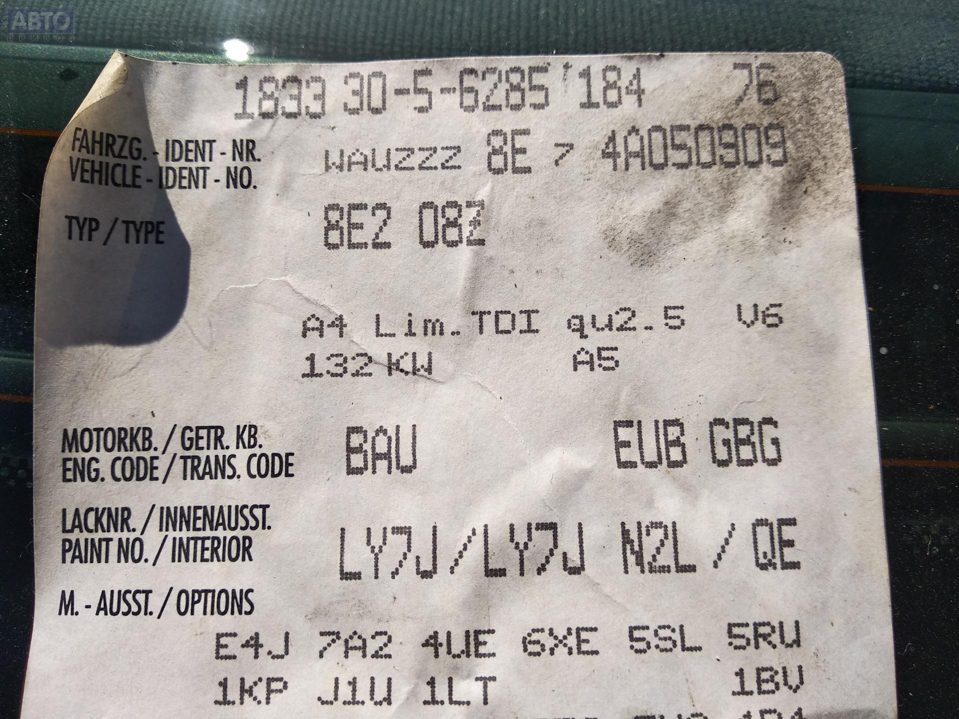 | Марка / Модель / Год: | Audi A4 B6 (2001-2004) 2003 |