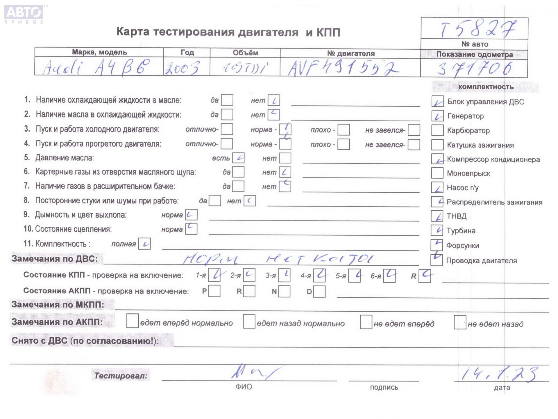 | Марка / Модель / Год: | Audi A4 B6 (2001-2004) 2003 |