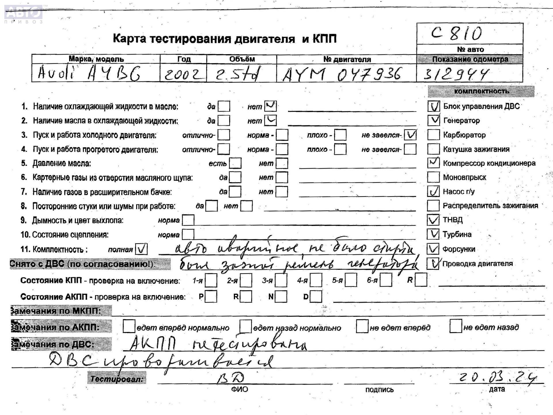 | Автомобиль / VIN: | C0810 WAUZZZ8E63A027684 |