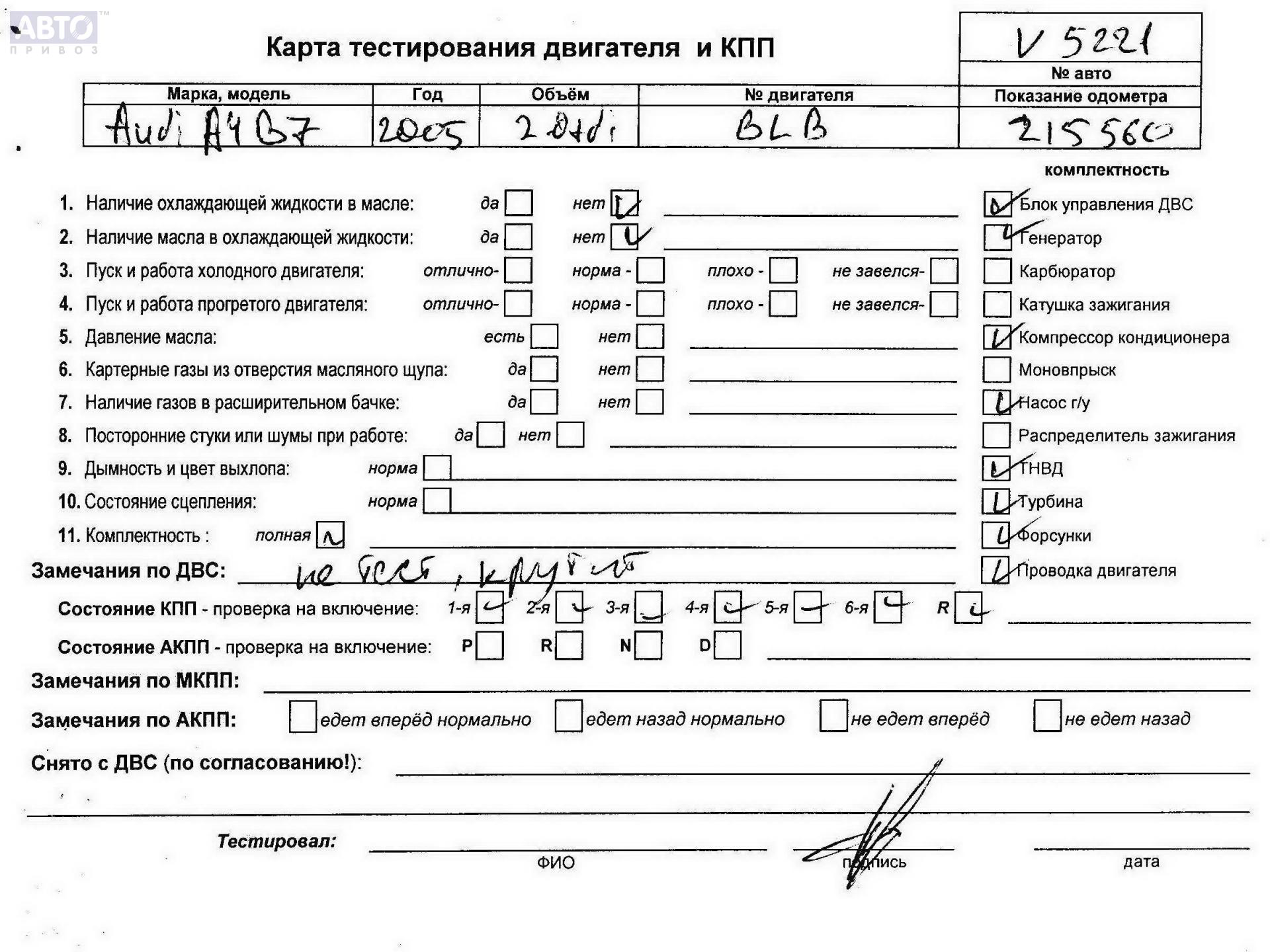 | Марка / Модель / Год: | Audi A4 B7 (2004-2008) 2005 |