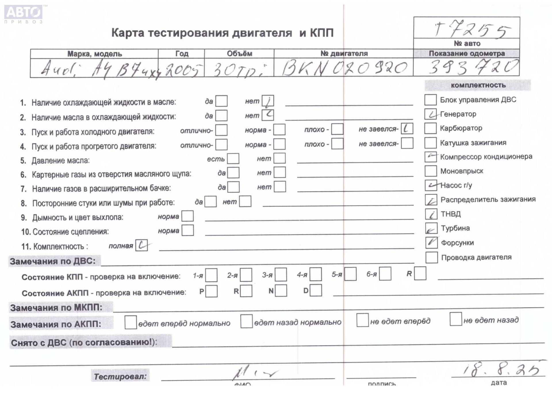 | Марка / Модель / Год: | Audi A4 B7 (2004-2008) 2005 |