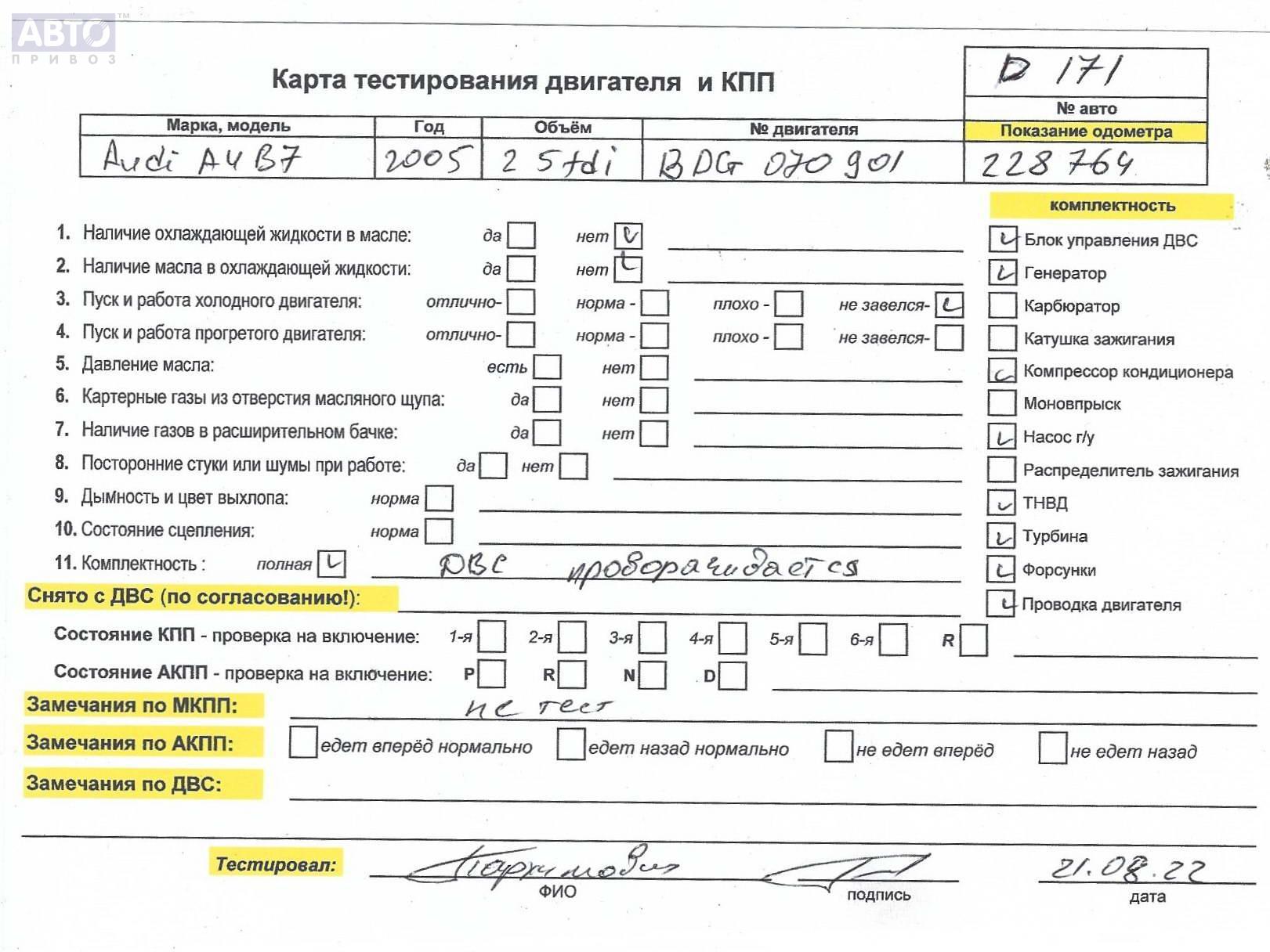| Марка / Модель / Год: | Audi A4 B7 (2004-2008) 2005 |