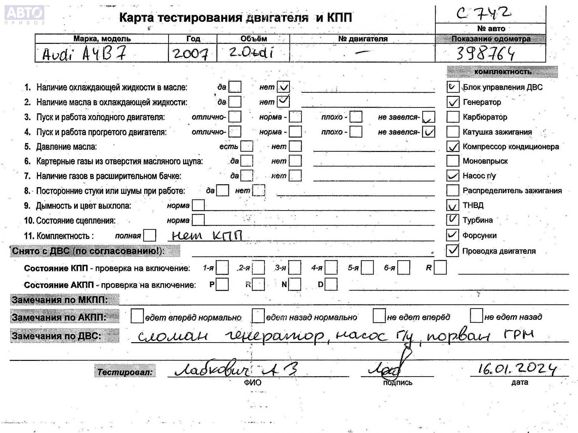 | Автомобиль / VIN: | C0742 WAUZZZ8E18A040849 |