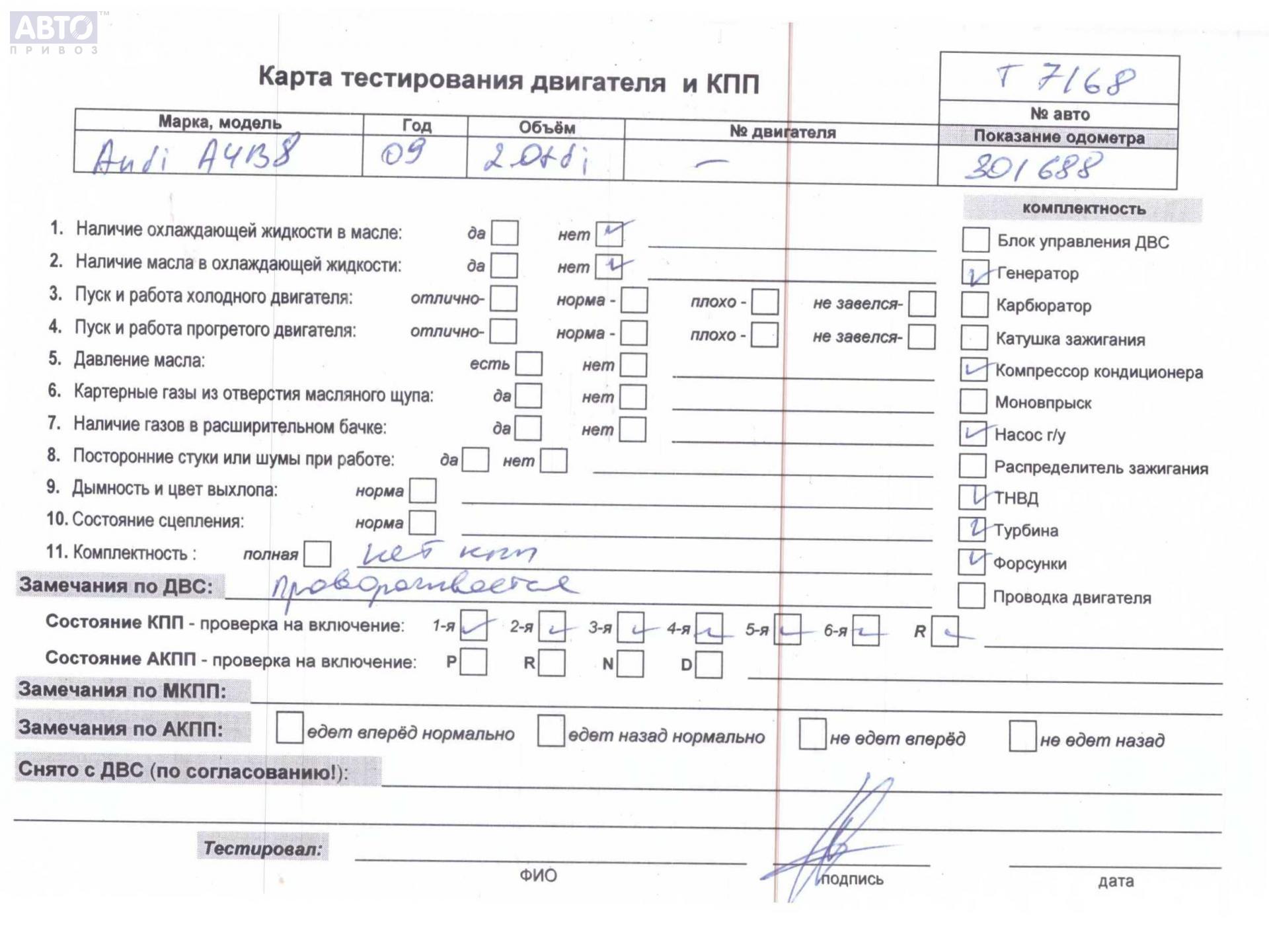 | Автомобиль / VIN: | T7168 WAUZZZ8K79A219971 |