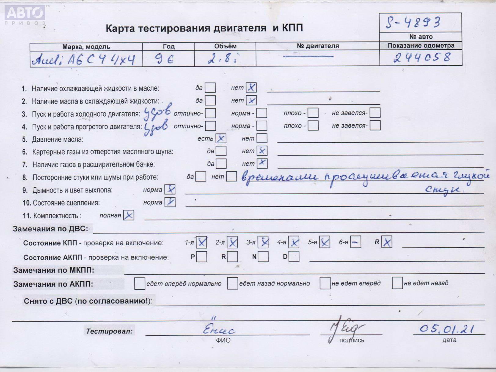 | Марка / Модель / Год: | Audi A6 C4 (1994-1997) 1996 |