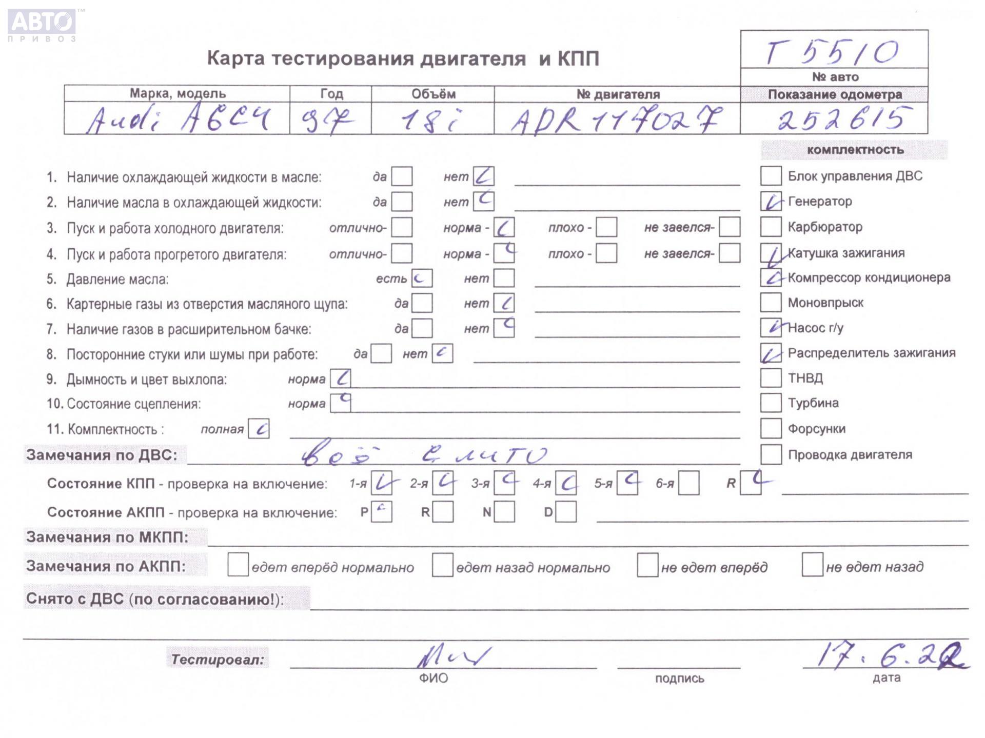 | Автомобиль / VIN: | T5510 WAUZZZ4AZVN054805 |