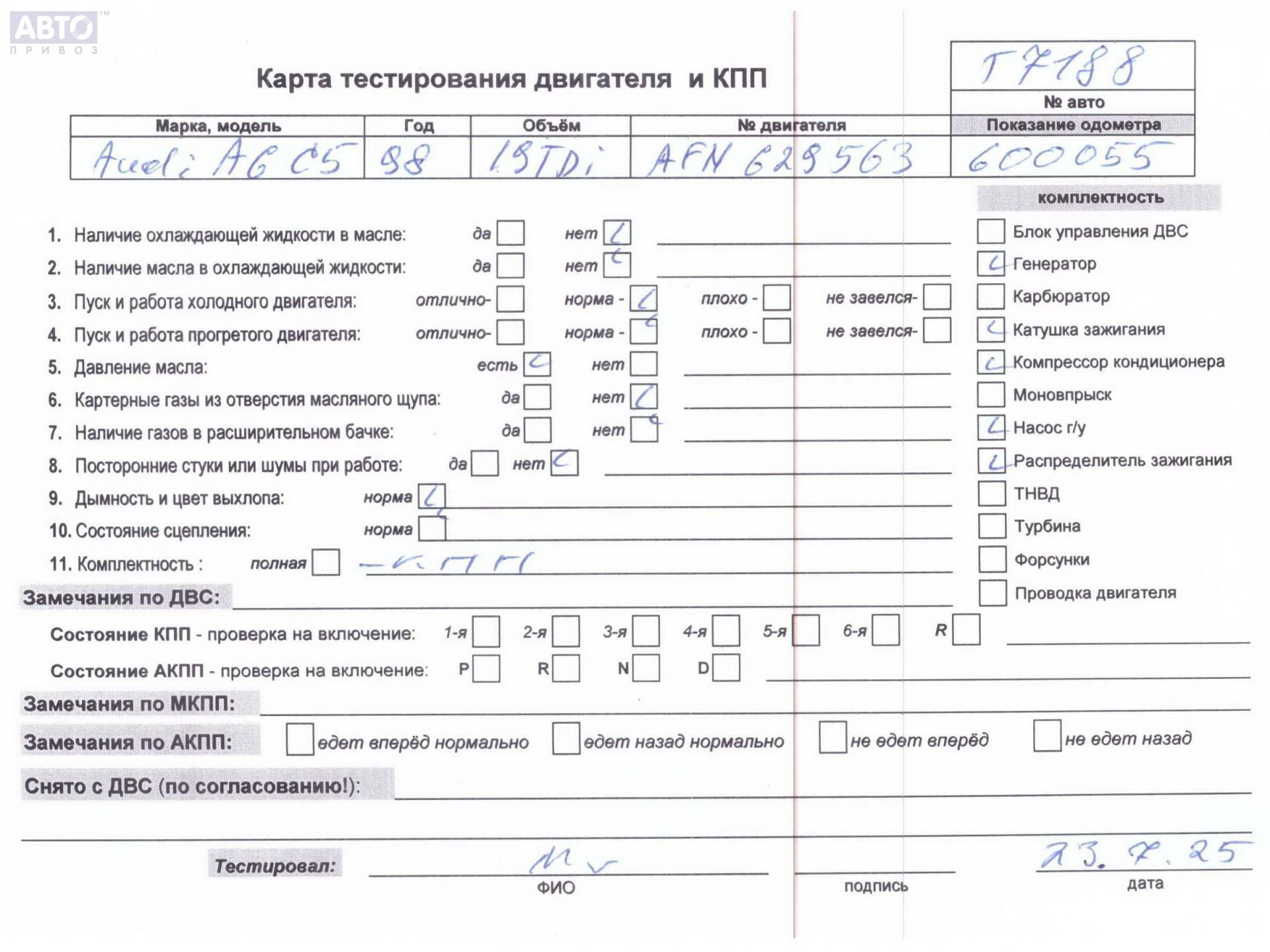 | Марка / Модель / Год: | Audi A6 C5 (1997-2005) 1998 |