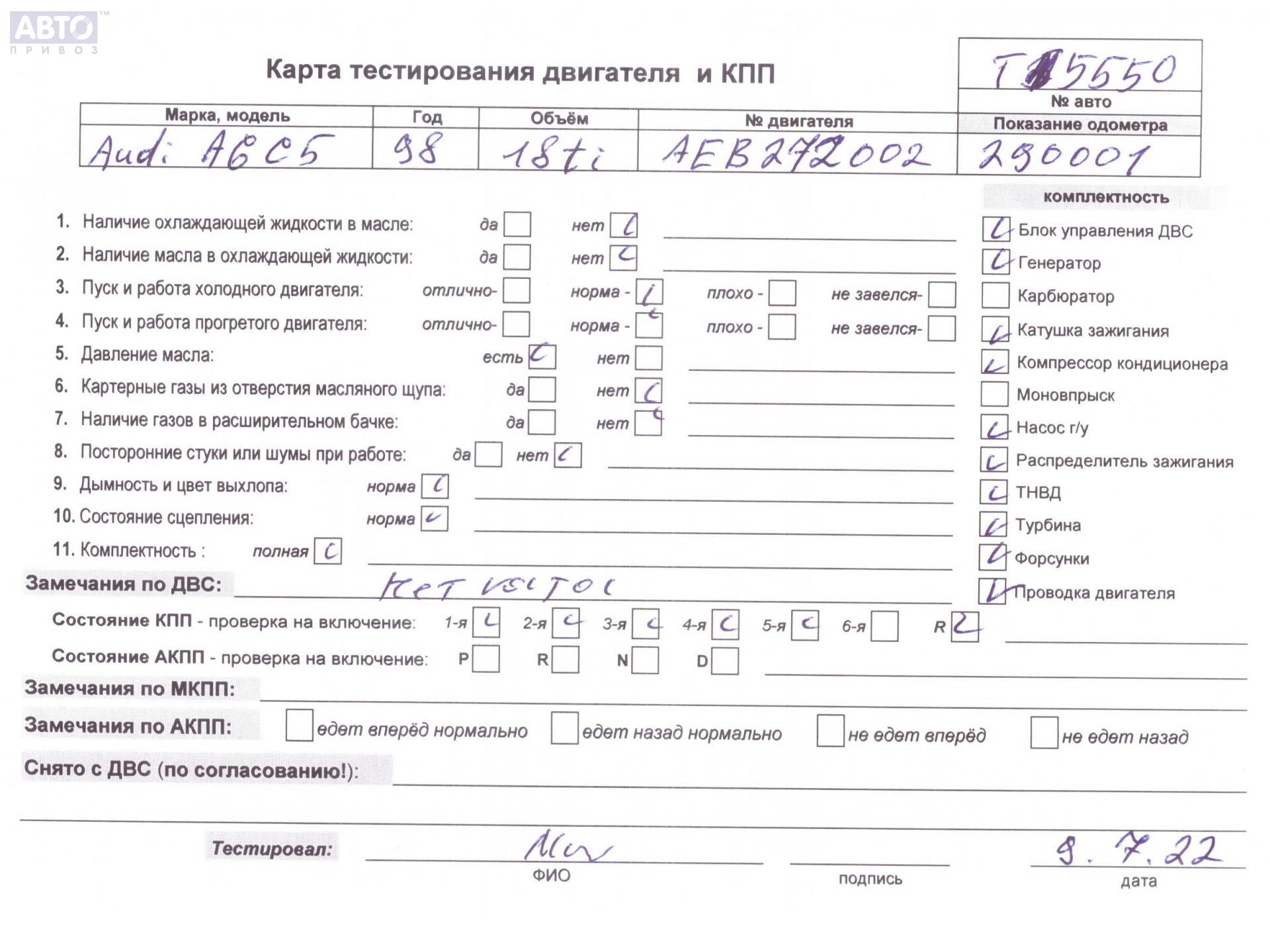 | Марка / Модель / Год: | Audi A6 C5 (1997-2005) 1998 |