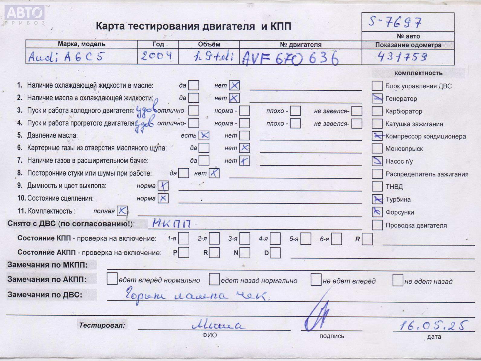 | Марка / Модель / Год: | Audi A6 C5 (1997-2005) 2004 |