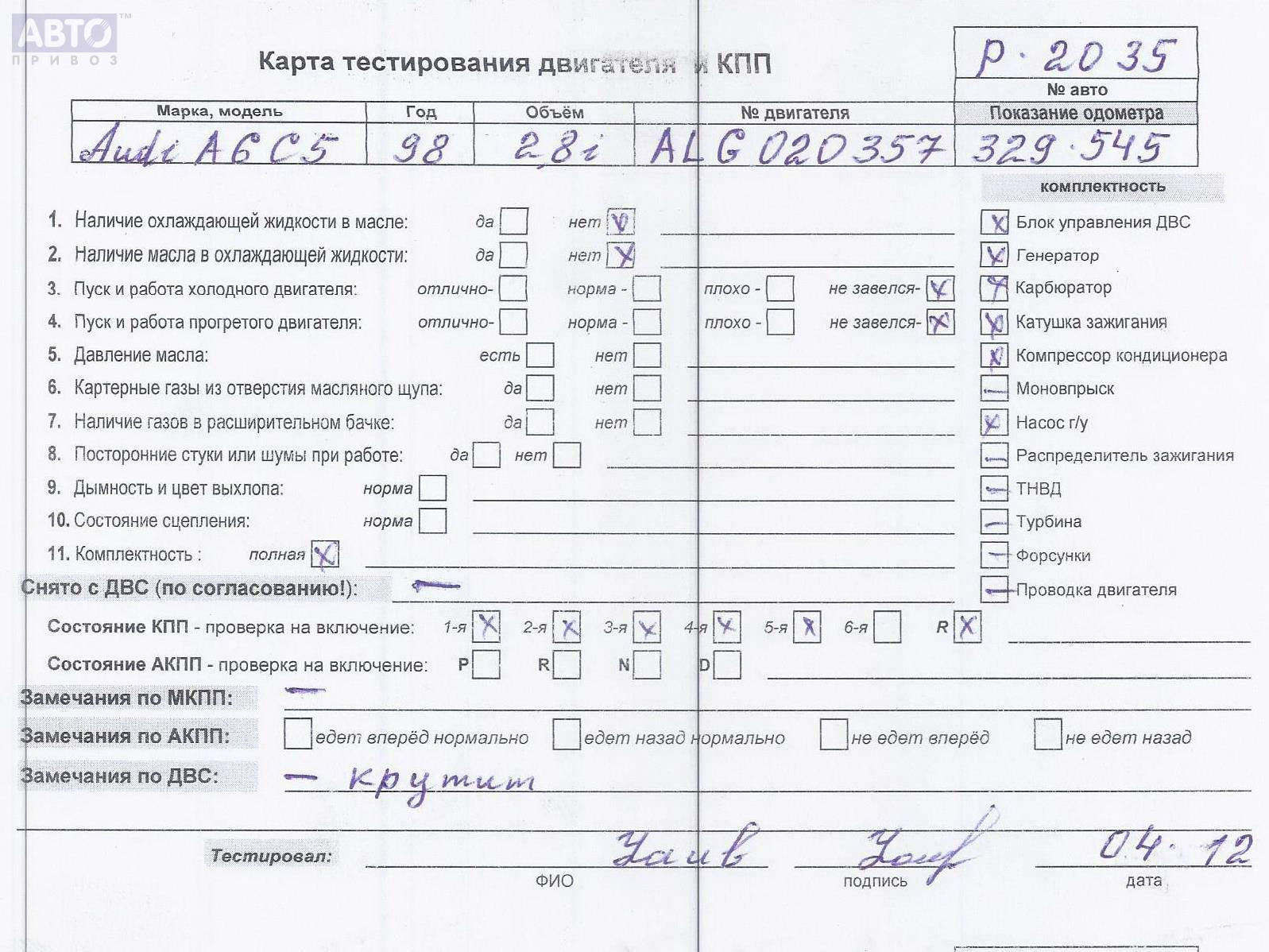 | Автомобиль / VIN: | P2035 WAUZZZ4BZWN144369 |