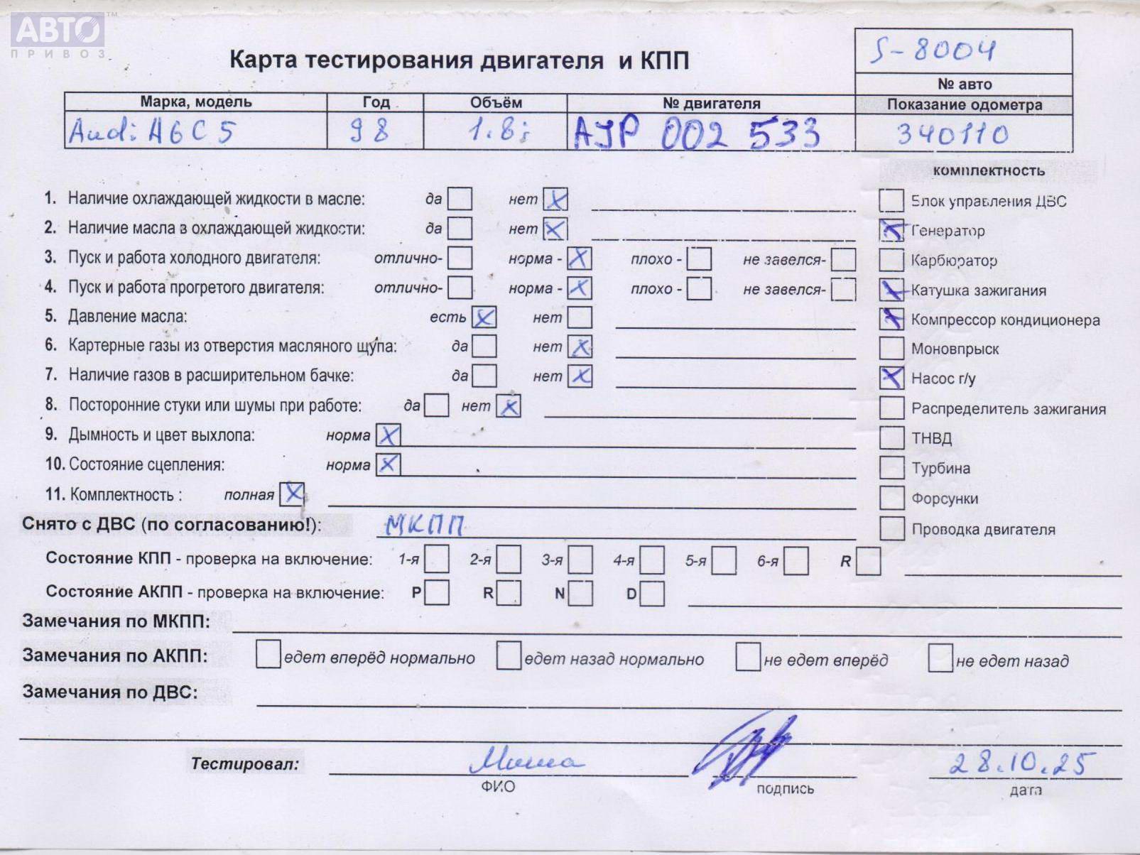 | Марка / Модель / Год: | Audi A6 C5 (1997-2005) 1998 |