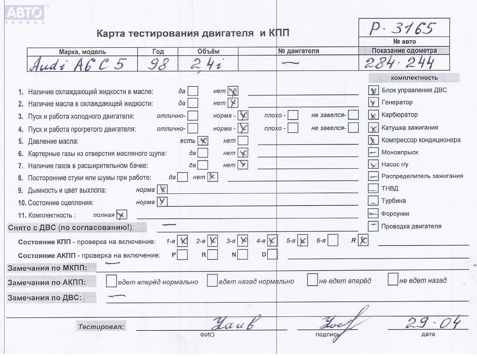 | Марка / Модель / Год: | Audi A6 C5 (1997-2005) 1998 |