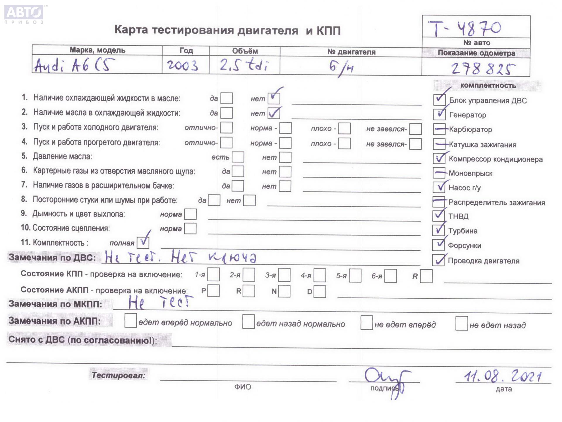 | Марка / Модель / Год: | Audi A6 C5 (1997-2005) 2003 |