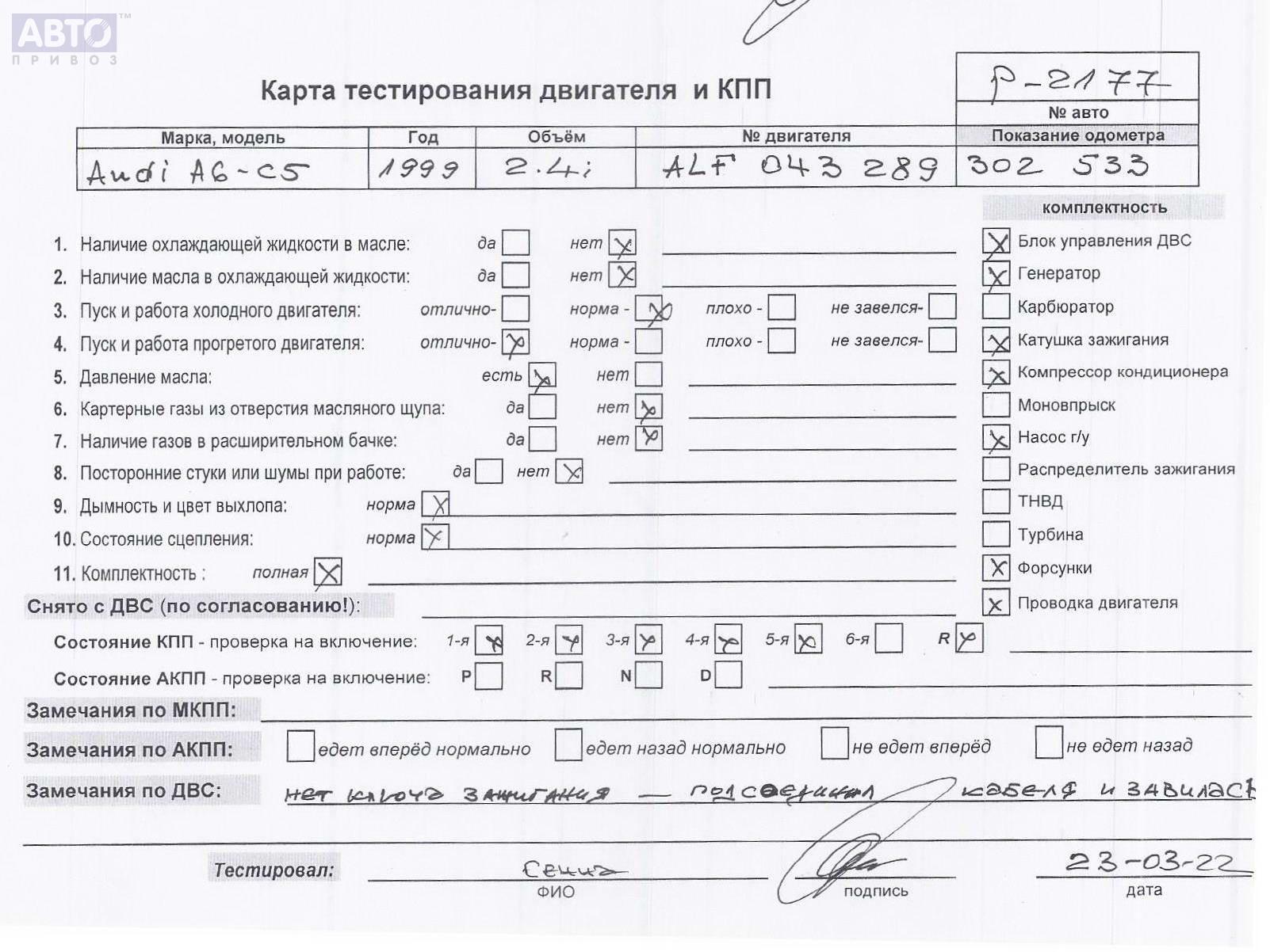 | Автомобиль / VIN: | P2177 WAUZZZ4BZWN186632 |