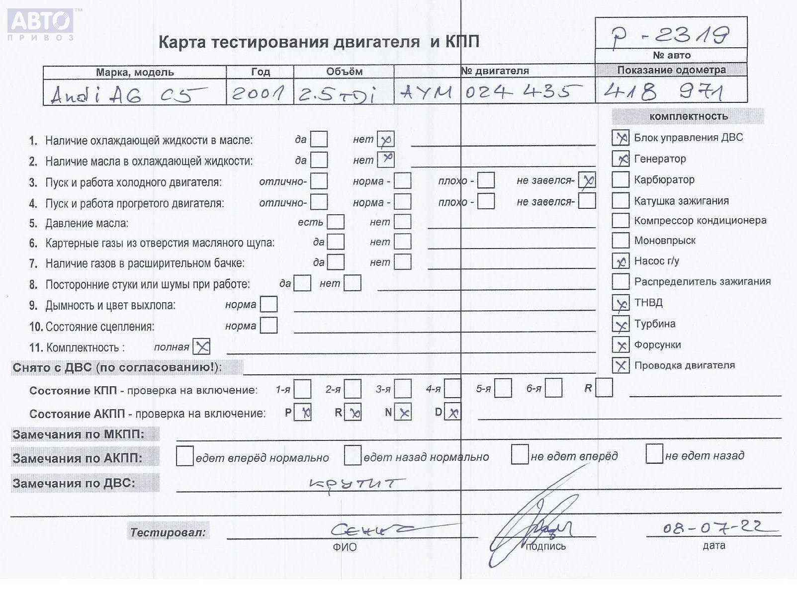 | Марка / Модель / Год: | Audi A6 C5 (1997-2005) 2002 |