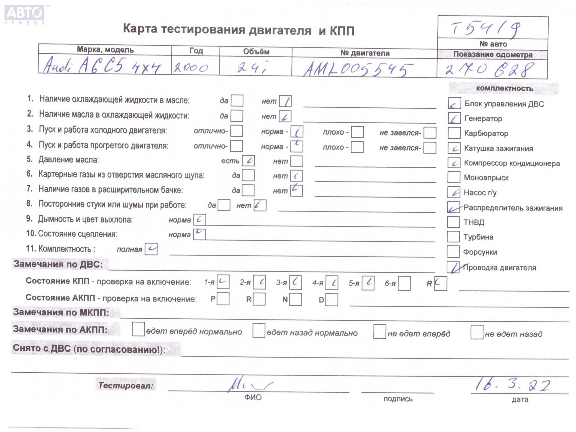 | Автомобиль / VIN: | T5419 WAUZZZ4BZ1N030746 |