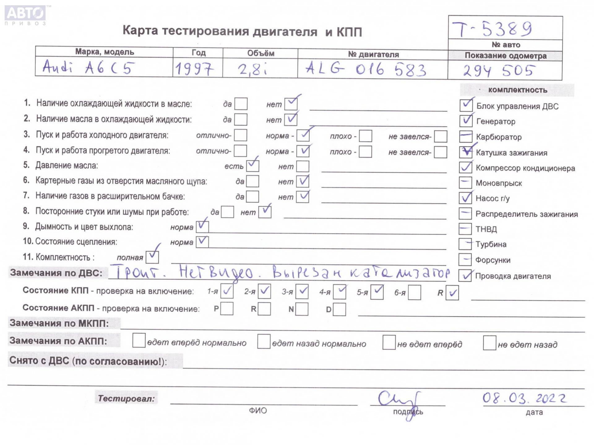 | Марка / Модель / Год: | Audi A6 C5 (1997-2005) 1998 |