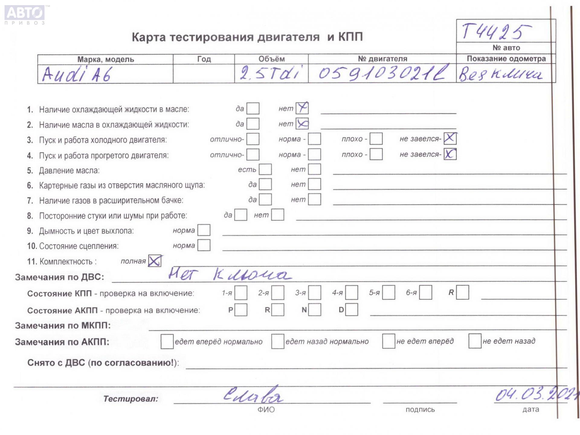 | Автомобиль / VIN: | T4425 WAUZZZ4BZ2N001247 |