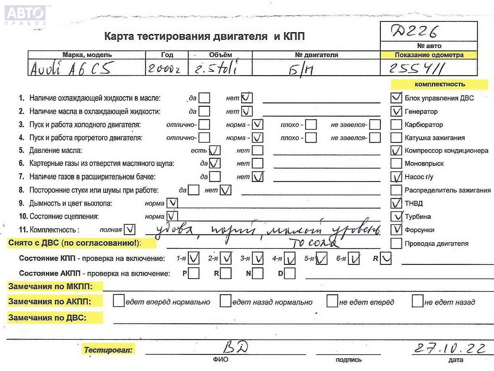 | Марка / Модель / Год: | Audi A6 C5 (1997-2005) 2002 |