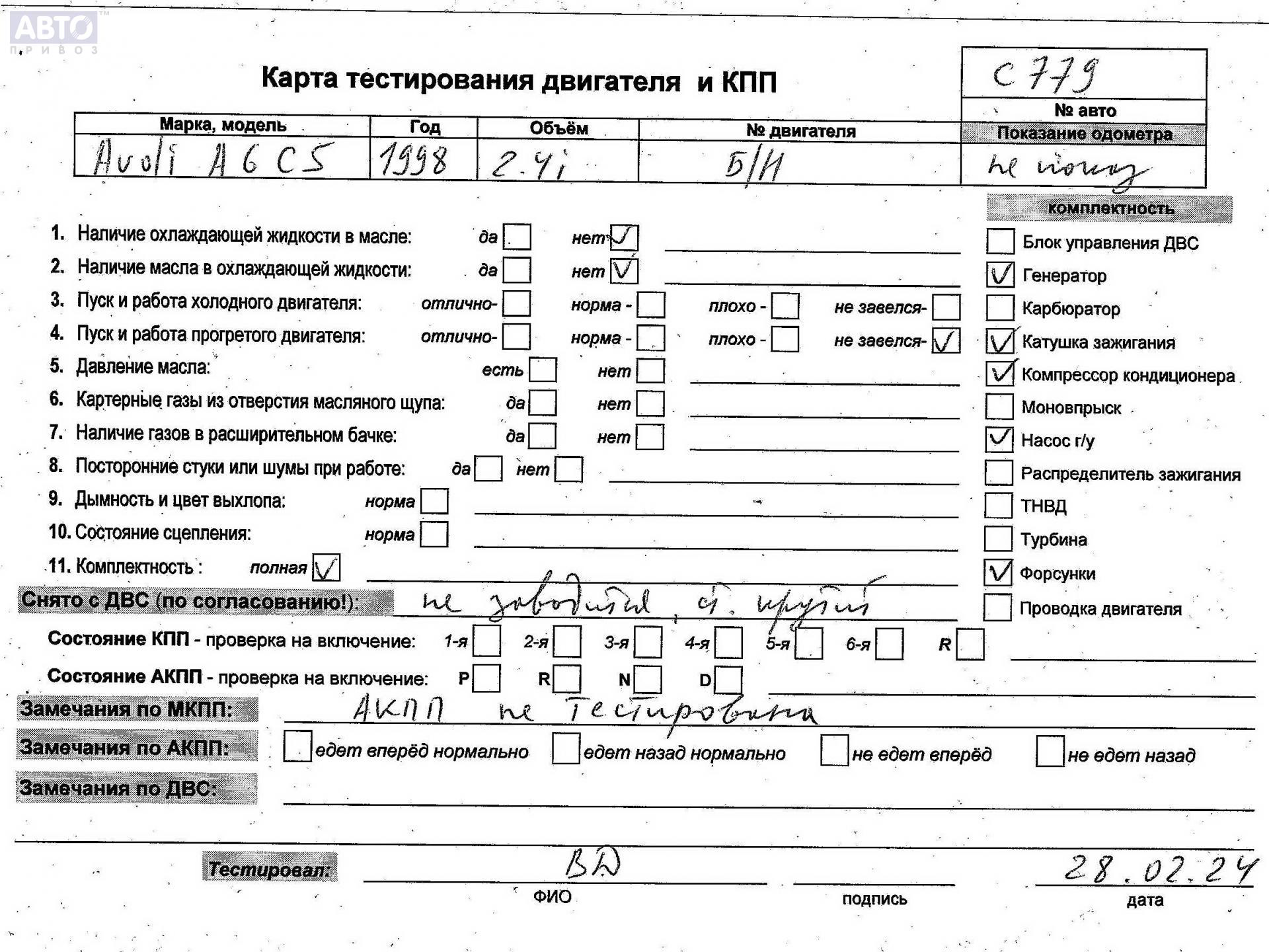 | Марка / Модель / Год: | Audi A6 C5 (1997-2005) 1998 |
