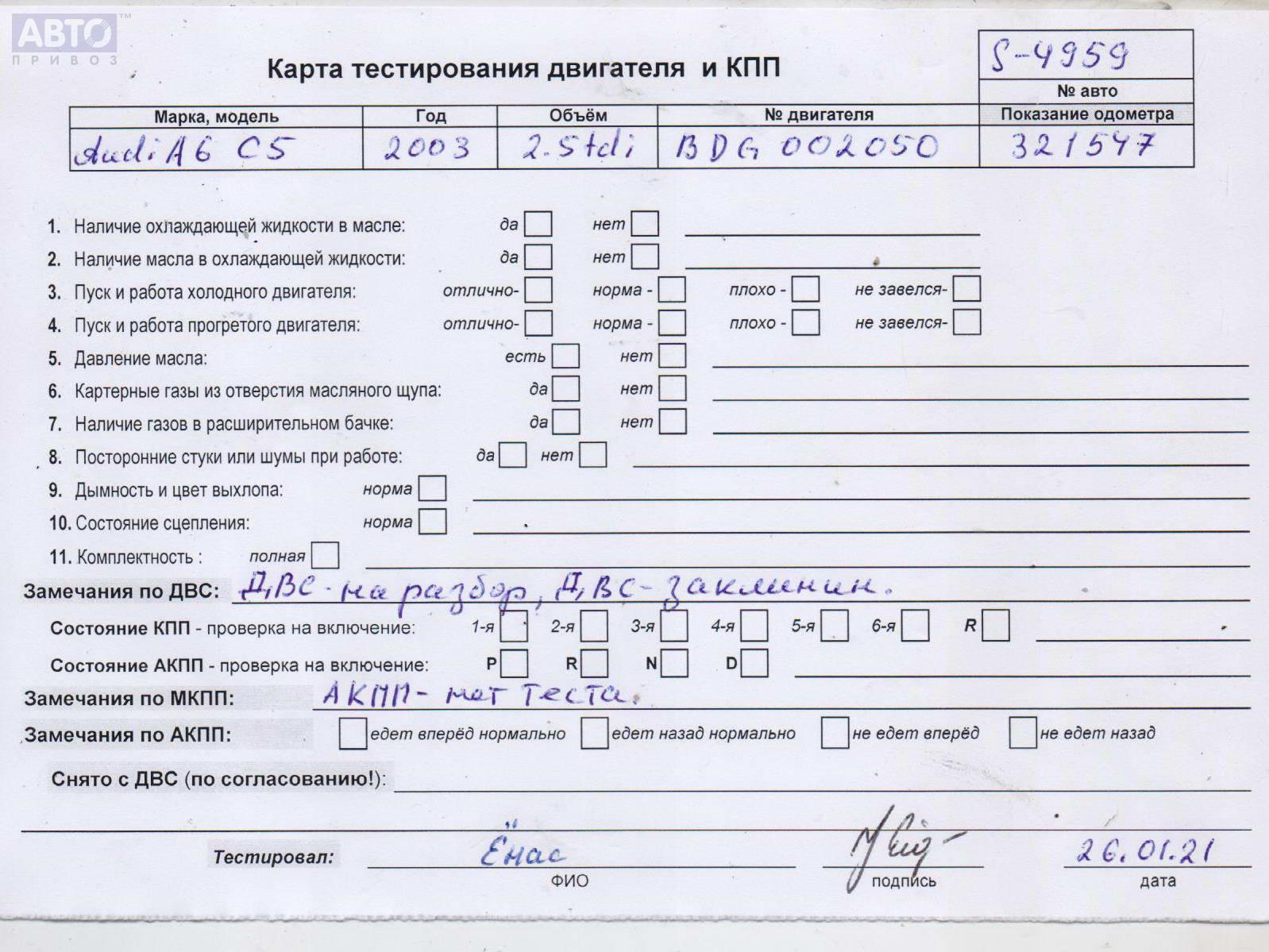 | Марка / Модель / Год: | Audi A6 C5 (1997-2005) 2003 |