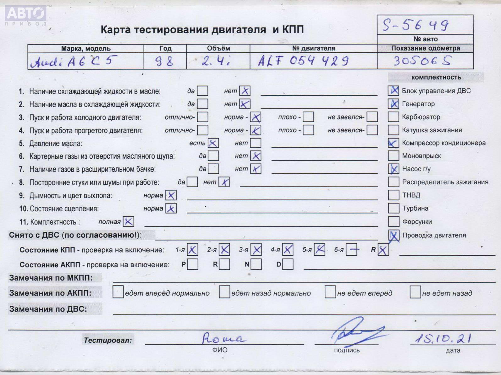 | Марка / Модель / Год: | Audi A6 C5 (1997-2005) 1998 |