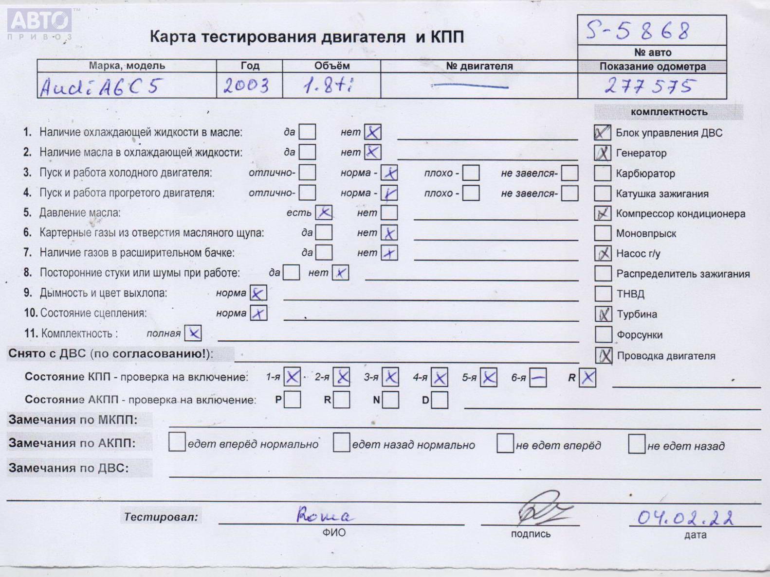 | Марка / Модель / Год: | Audi A6 C5 (1997-2005) 2003 |
