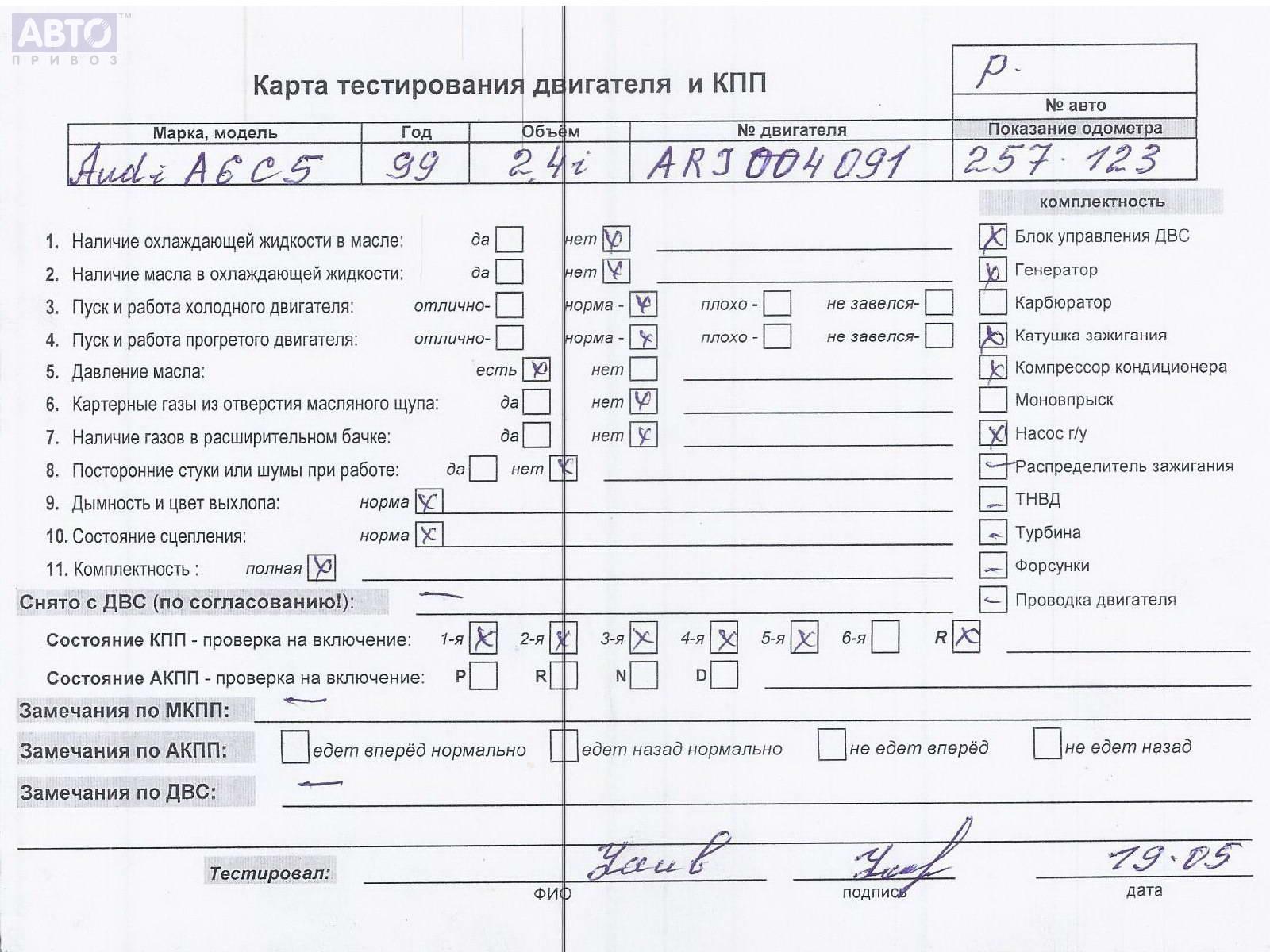 | Марка / Модель / Год: | Audi A6 C5 (1997-2005) 1999 |