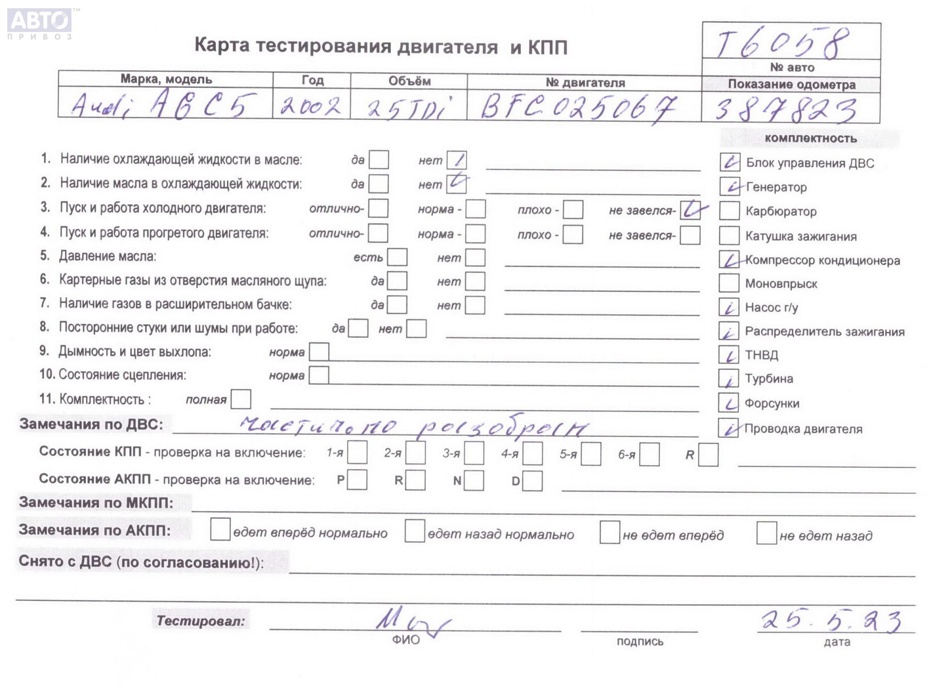 | Марка / Модель / Год: | Audi A6 C5 (1997-2005) 2002 |