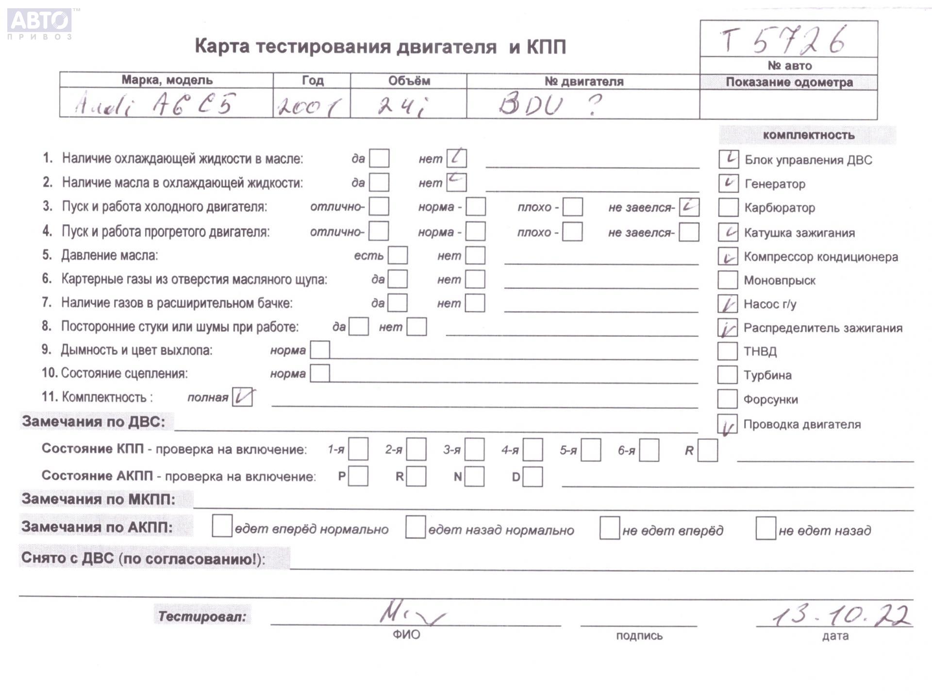 | Марка / Модель / Год: | Audi A6 C5 (1997-2005) 2002 |