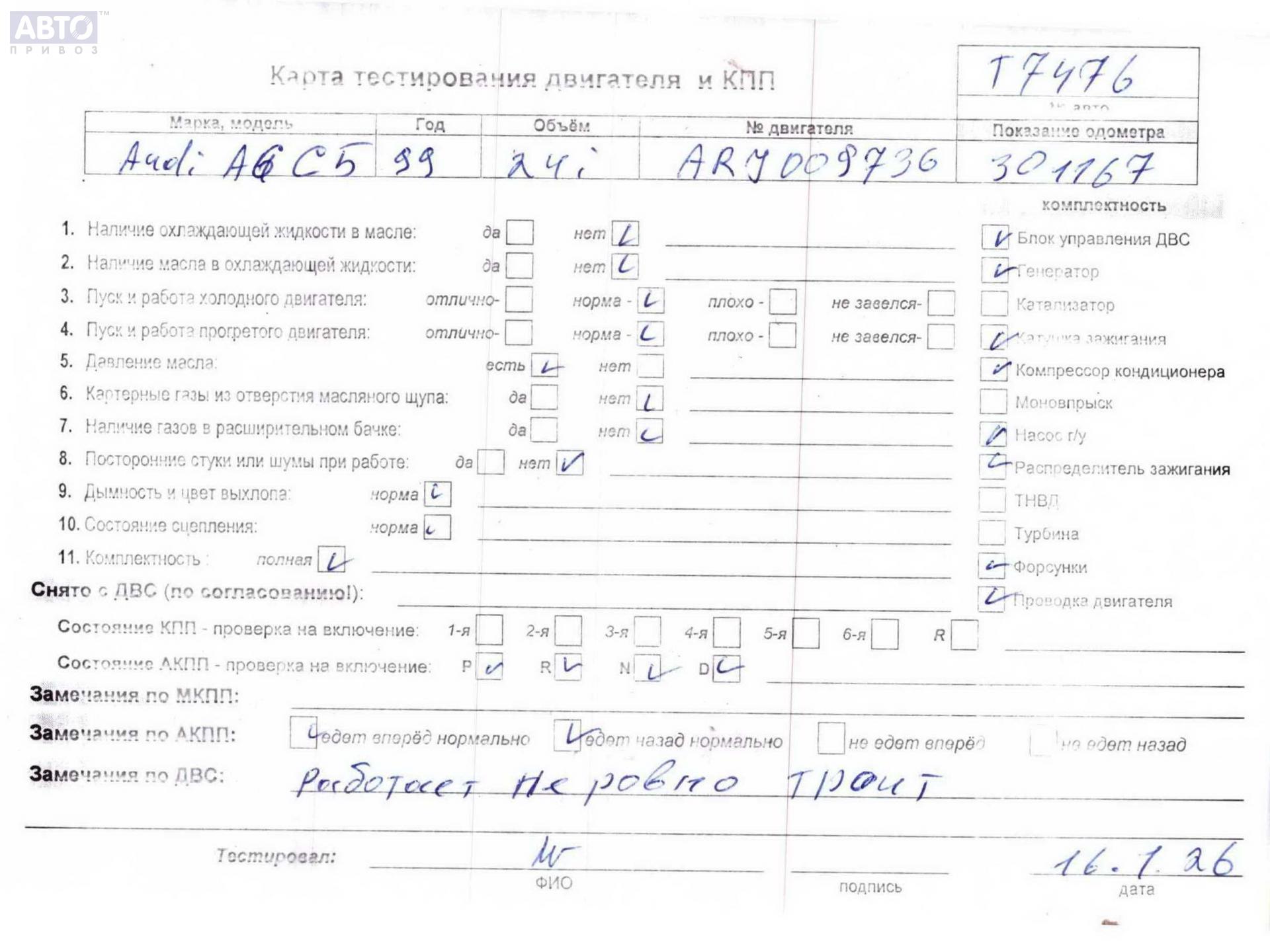 | Марка / Модель / Год: | Audi A6 C5 (1997-2005) 1999 |