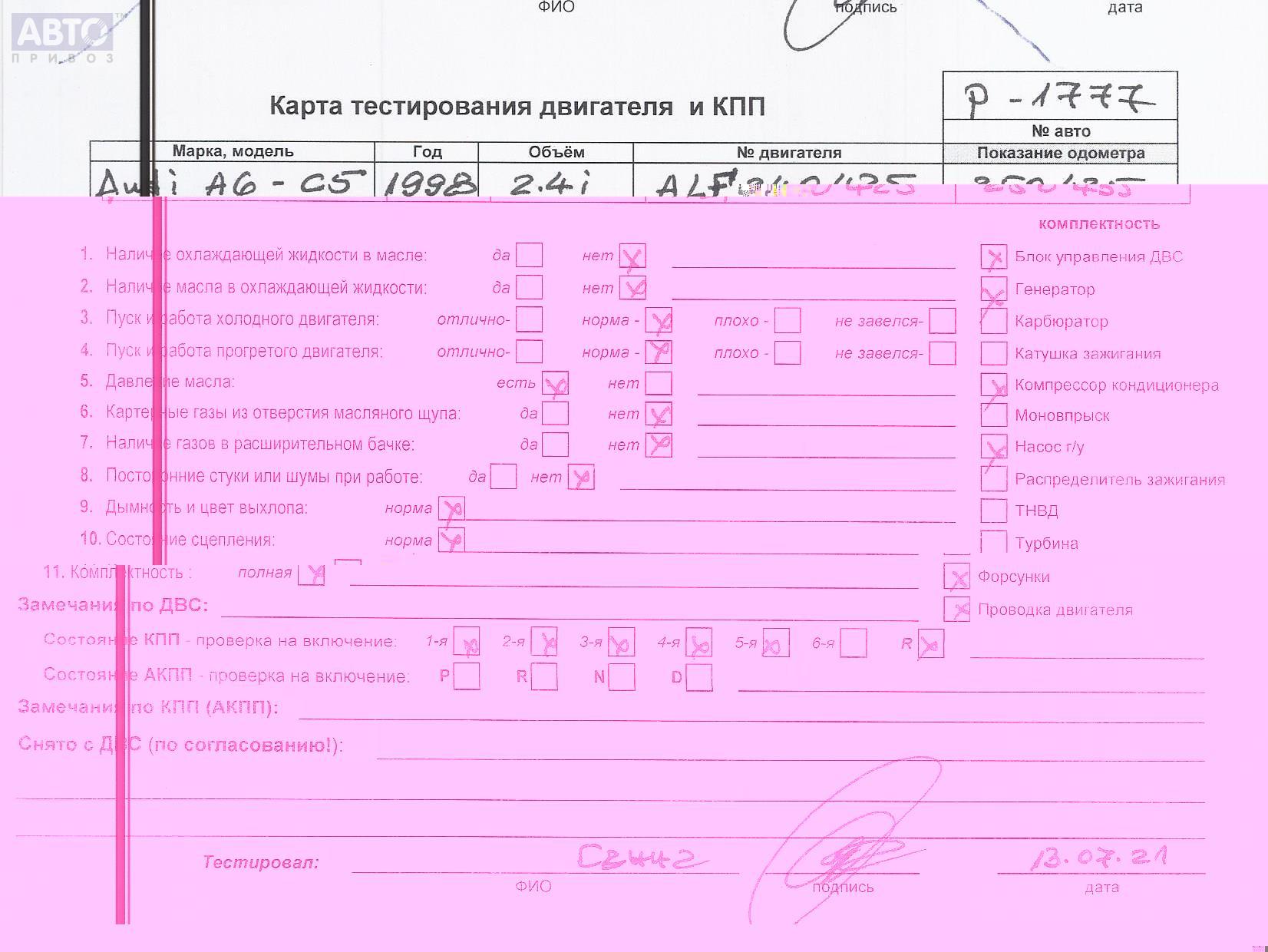 | Марка / Модель / Год: | Audi A6 C5 (1997-2005) 1998 |