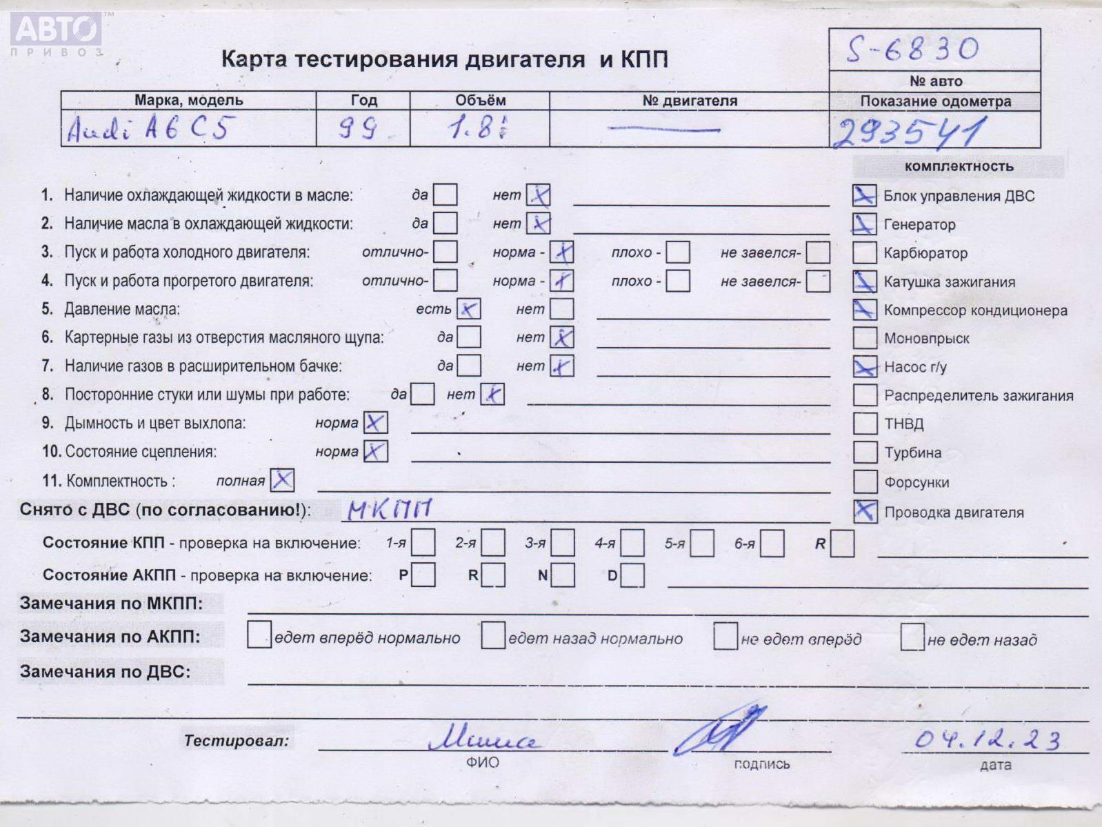 | Марка / Модель / Год: | Audi A6 C5 (1997-2005) 1999 |