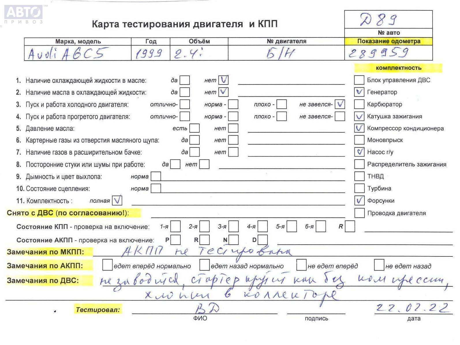 | Автомобиль / VIN: | D0089 WAUZZZ4BZXN047254 |
