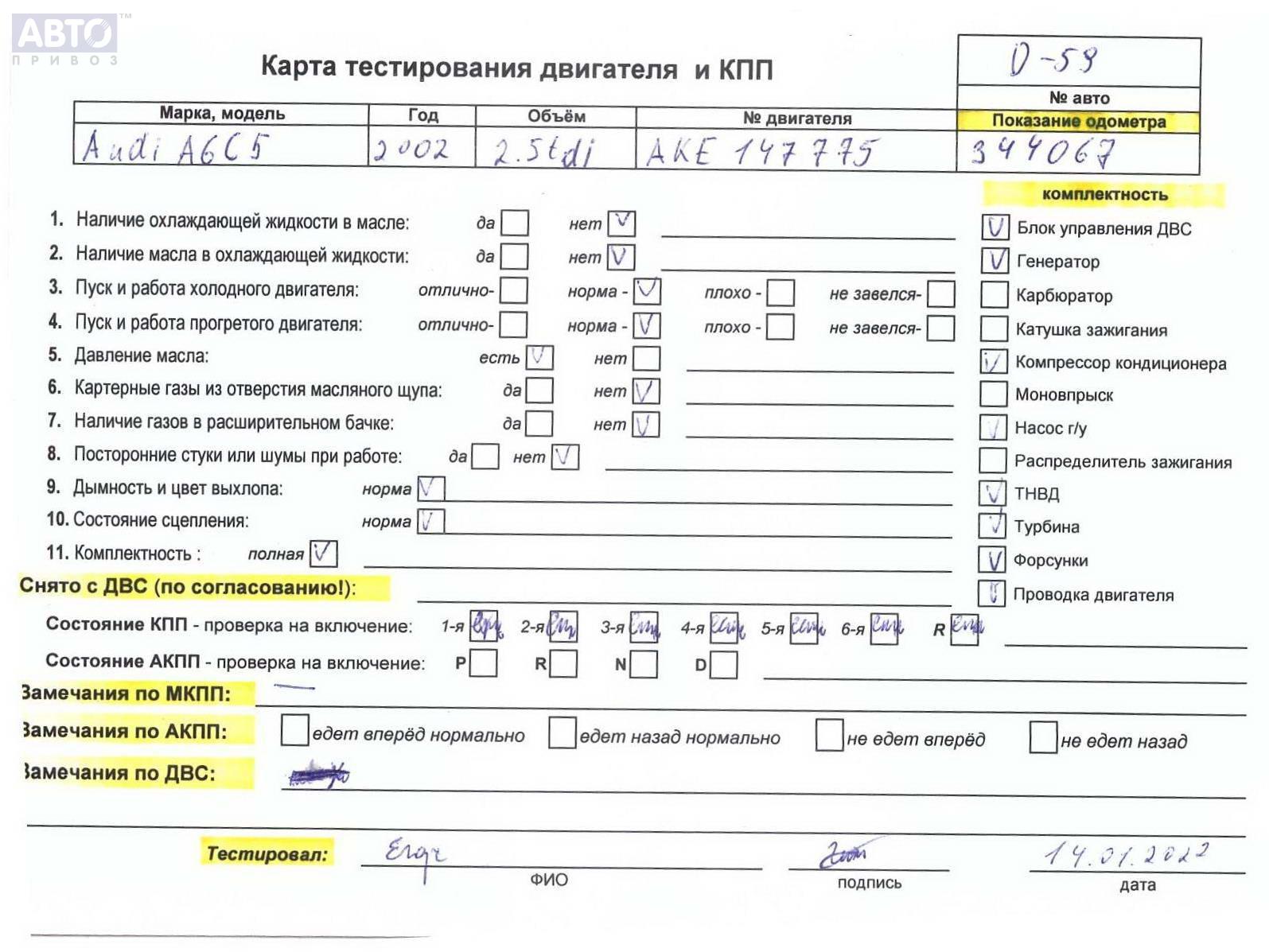 | Марка / Модель / Год: | Audi A6 C5 (1997-2005) 2002 |