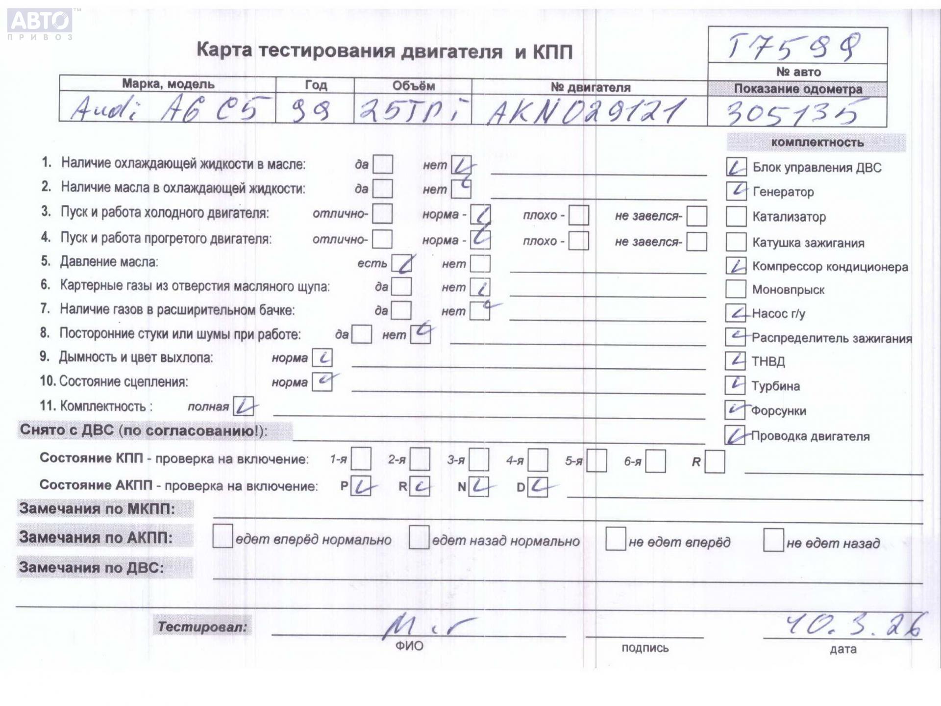 | Марка / Модель / Год: | Audi A6 C5 (1997-2005) 1999 |