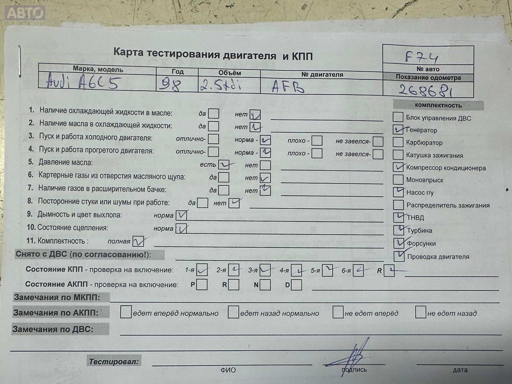 | Автомобиль / VIN: | F0074 WAUZZZ4BZWN154168 |