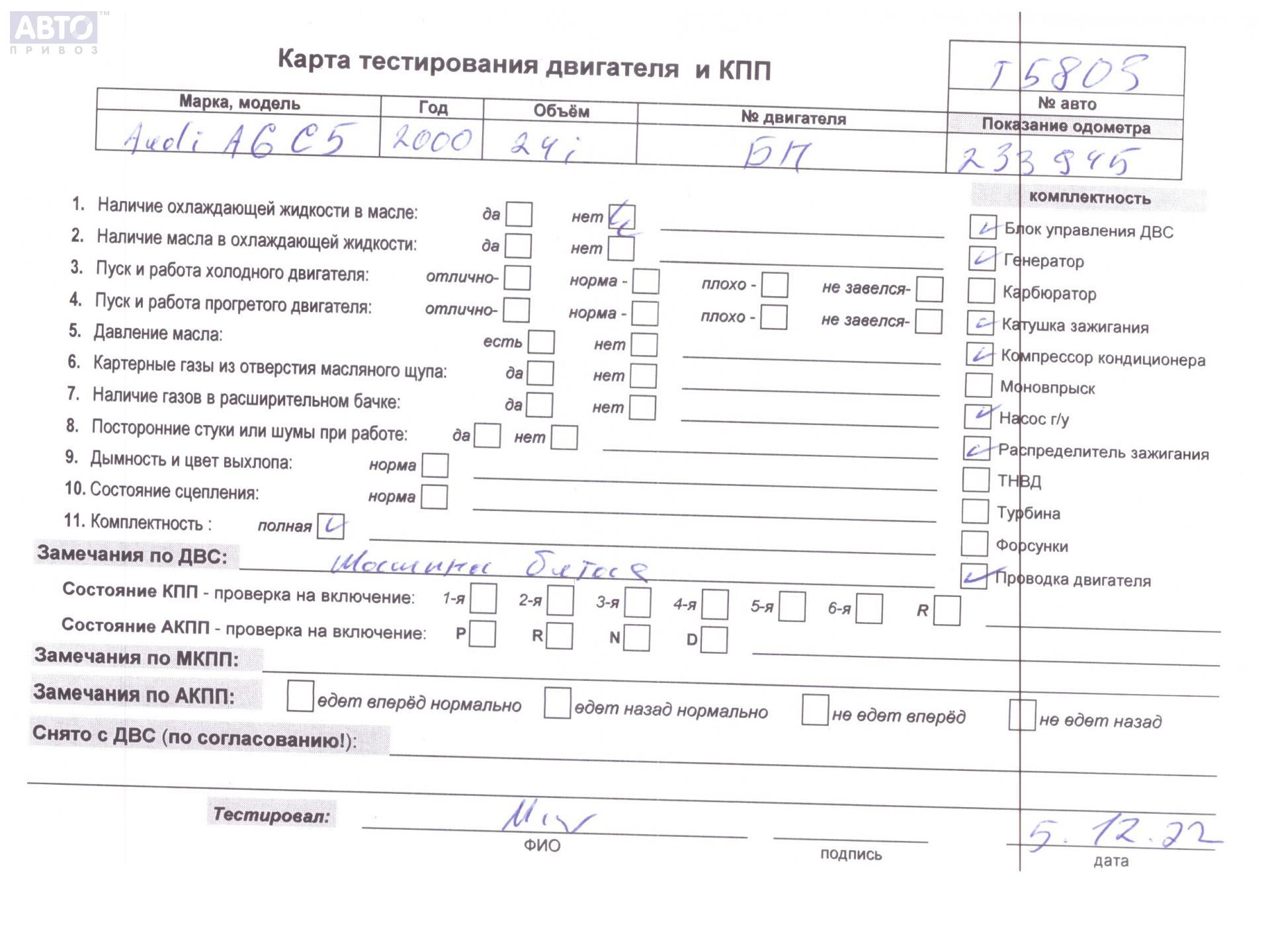 | Марка / Модель / Год: | Audi A6 C5 (1997-2005) 1997 |