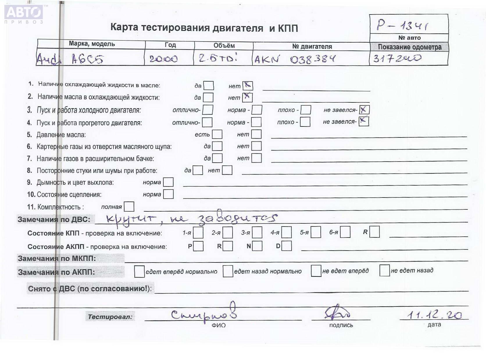 | Автомобиль / VIN: | P1341 WAUZZZ4BZYN128010 |