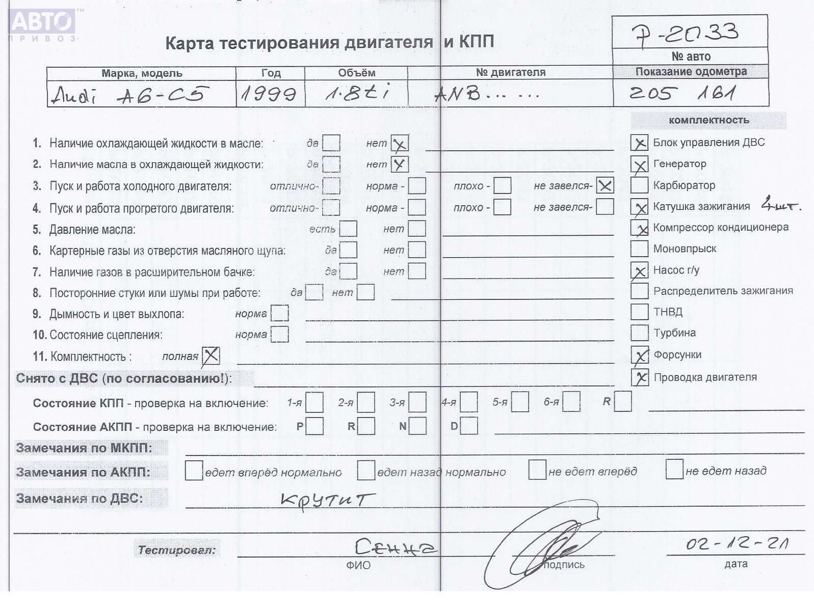 | Марка / Модель / Год: | Audi A6 C5 (1997-2005) 1999 |