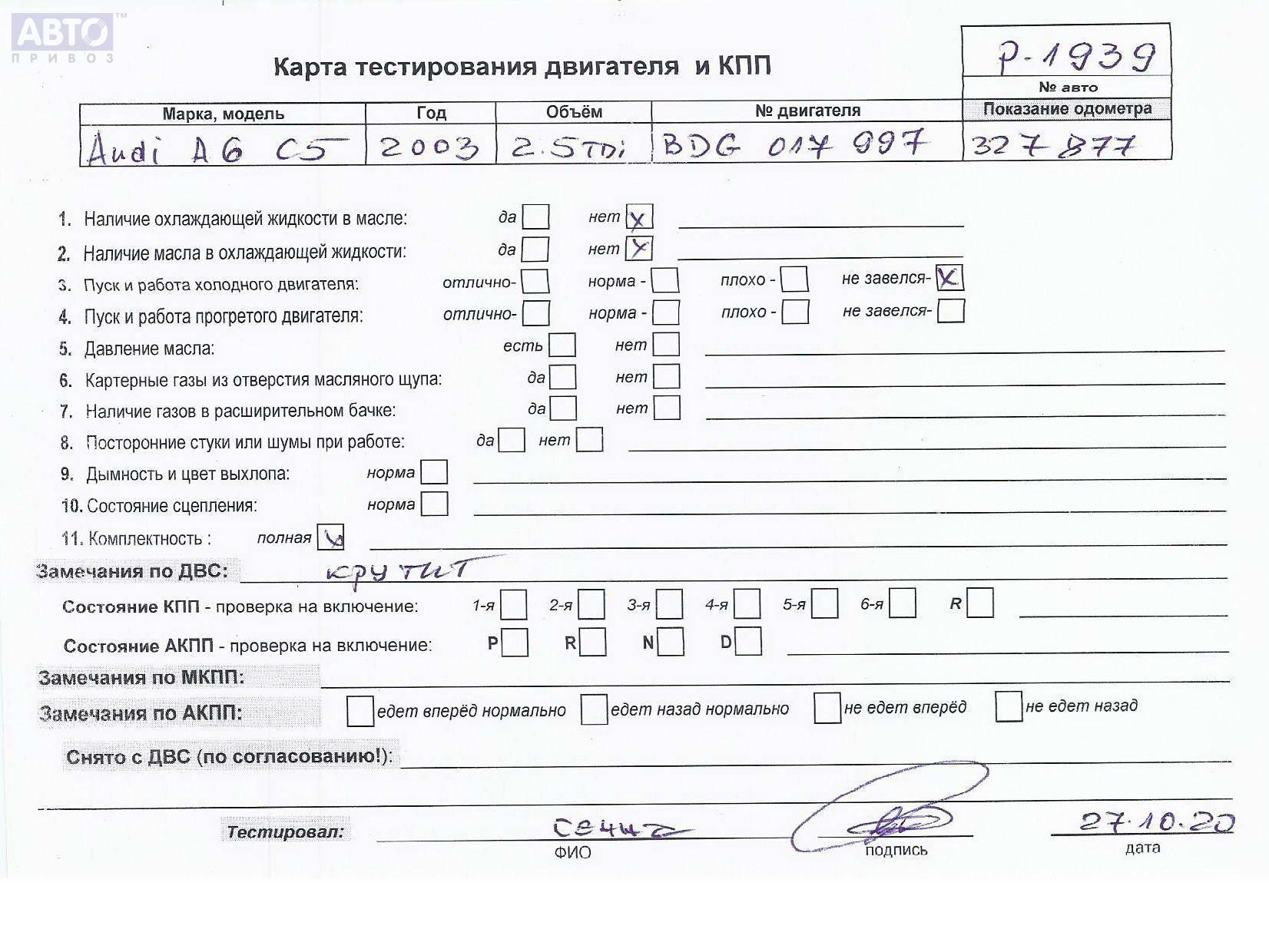 | Марка / Модель / Год: | Audi A6 C5 (1997-2005) 2003 |