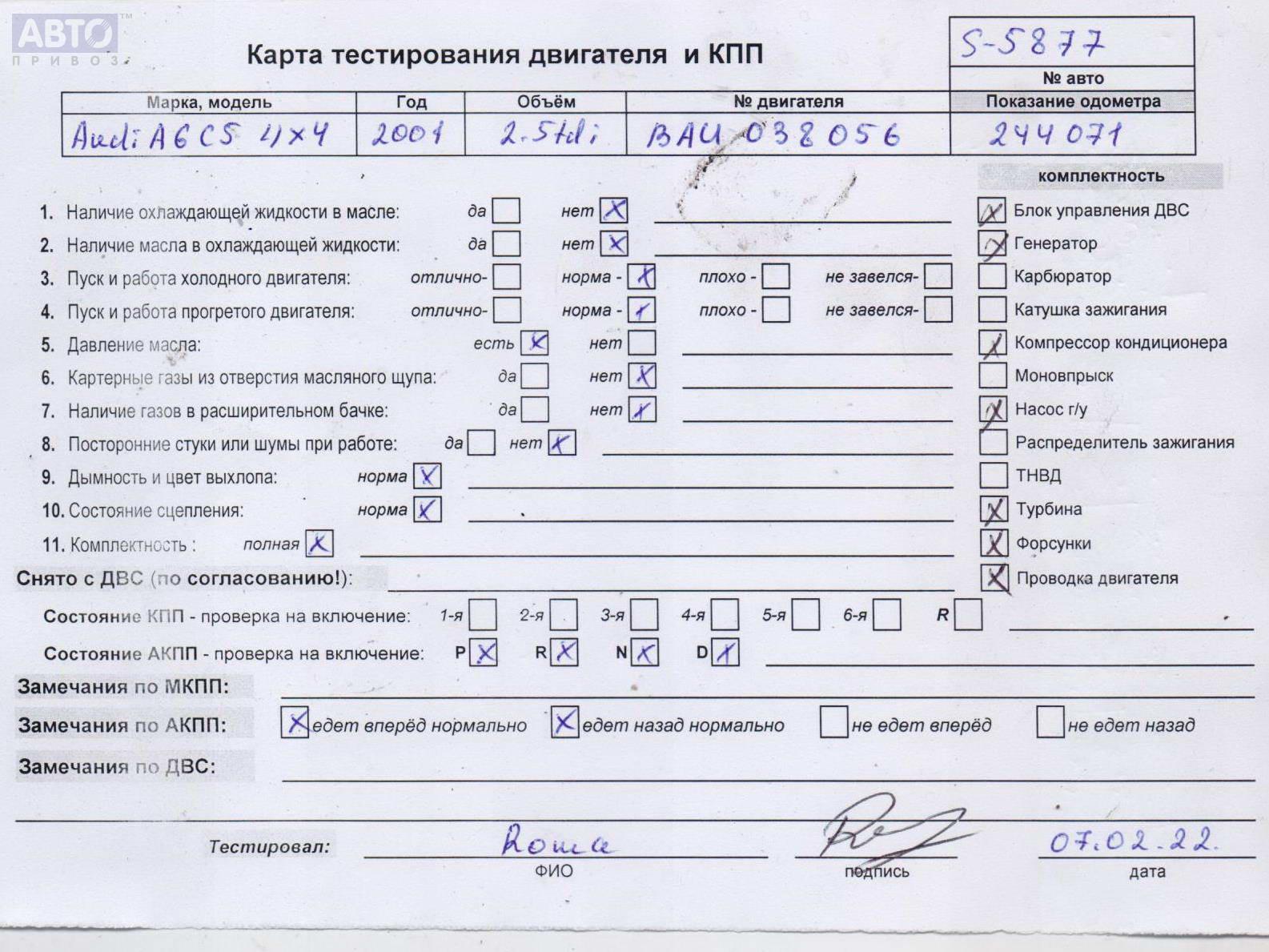 | Автомобиль / VIN: | S5877 WAUZZZ4B25N007066 |