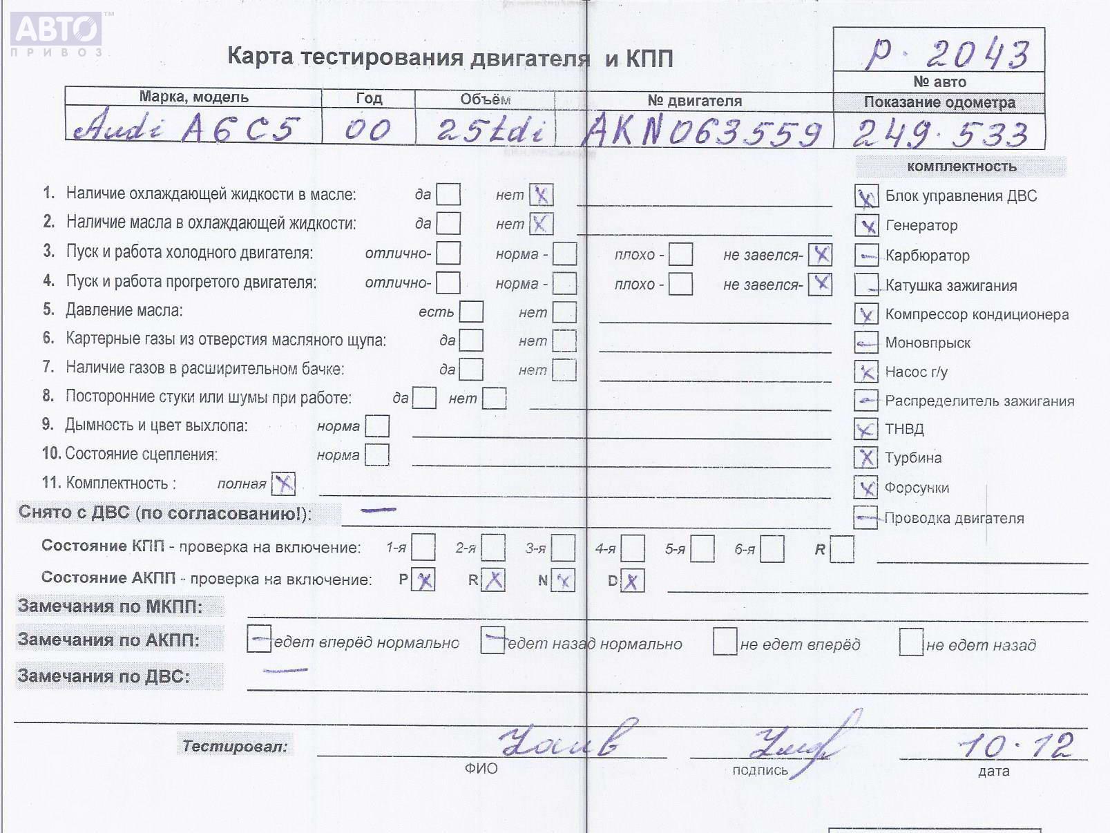 | Автомобиль / VIN: | P2043 WAUZZZ4BZ1N076884 |